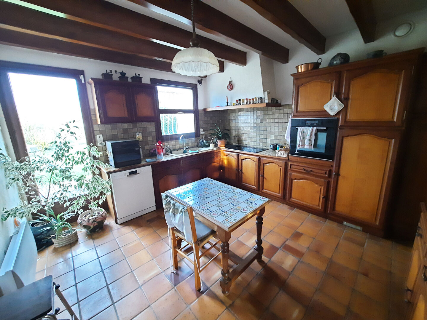 Maison avec de très beaux volumes offrant une entrée, une grande pièce de vie lumineuse avec cheminée, une cuisine indépendante, cinq chambres avec placards, un wc indépendant et une salle de bains avec douche.
