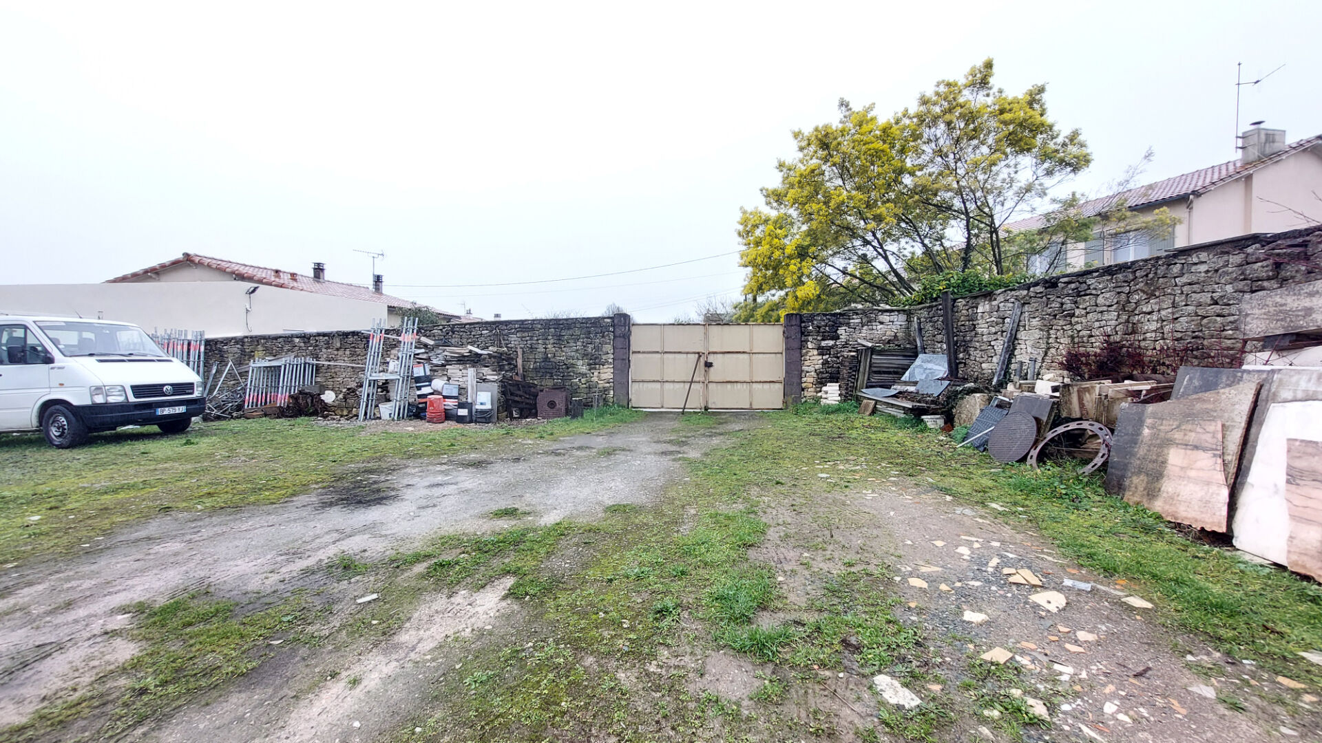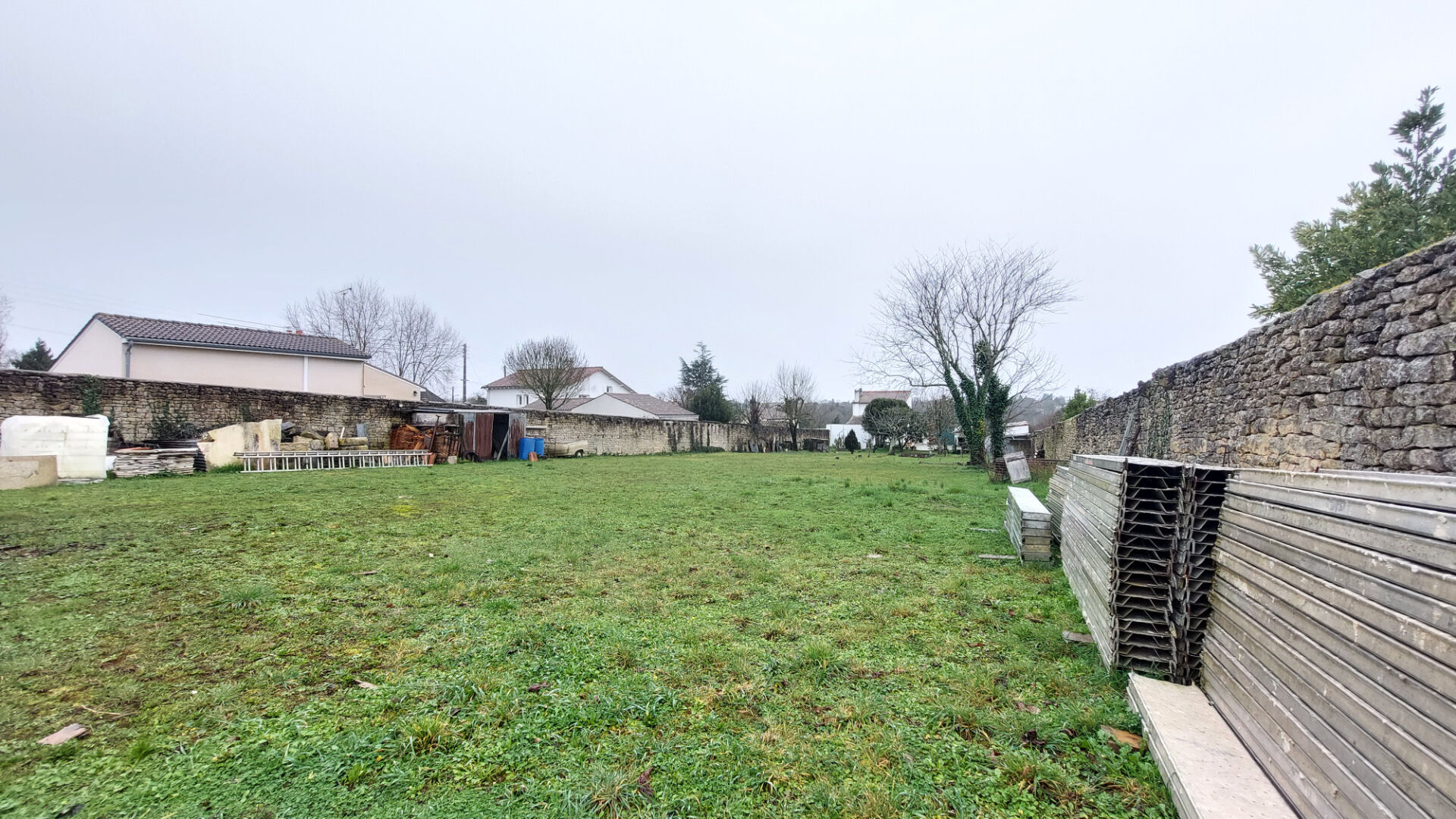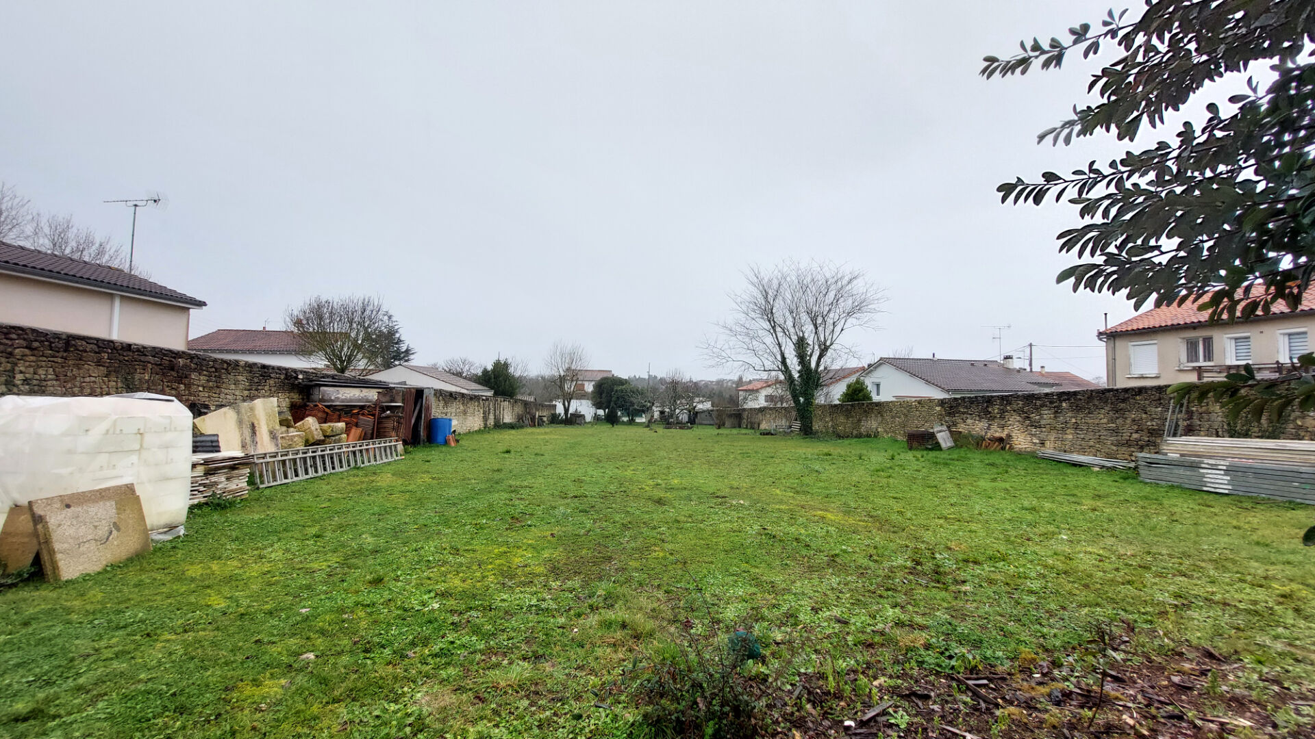 Le terrain, engazonné et arboré, d'environ 1700 m², est clos sur 3 cotés par un mur en pierre haut d'environ 2m. L'entrée se fait par un portail accessible par une rue peu fréquentée. Il est libre de constructeur et avec un Certificat d'Urbanisme Opérationnel validé par la mairie. Ce CU autorise une division jusqu'à 5 lots avec voie d'accès.