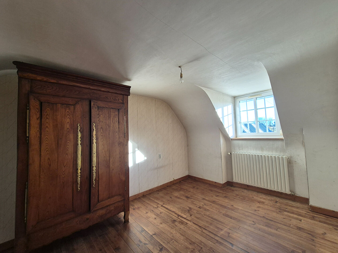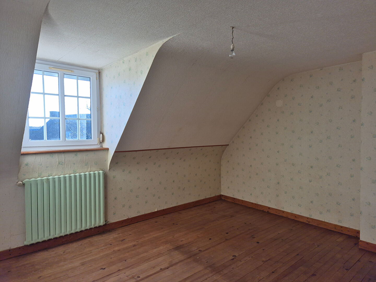 À l'étage, un couloir dessert quatre chambres, offrant de beaux volumes et de nombreuses possibilités d'aménagement.