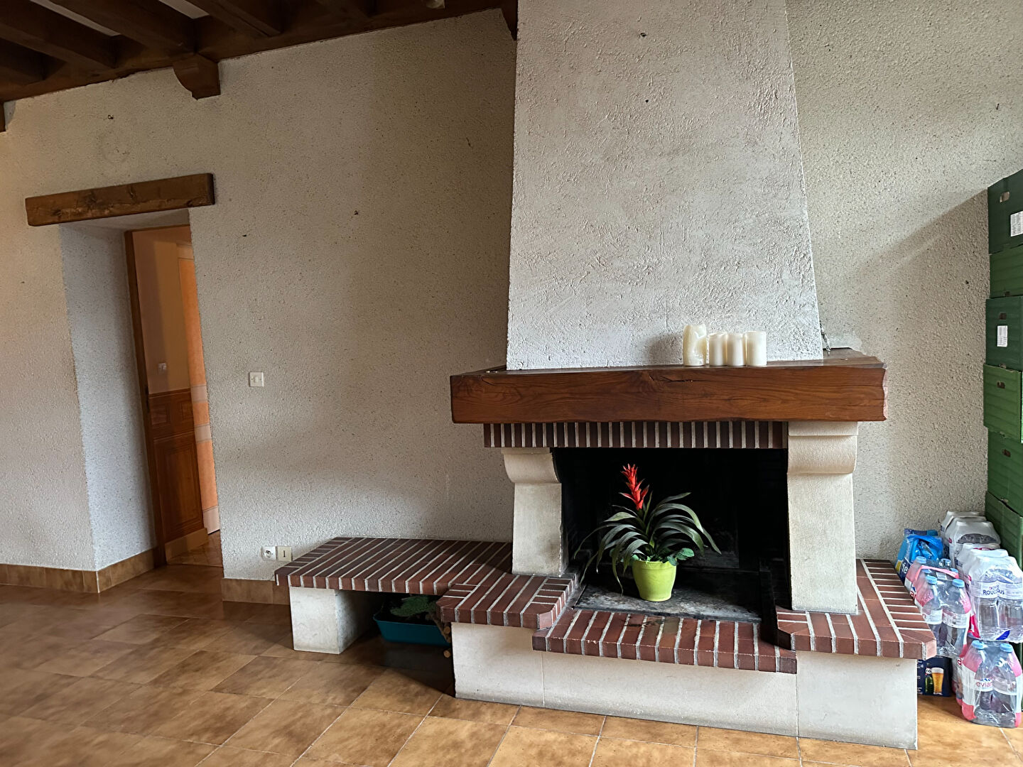 Une longère offrant de plain pied, un grand salon-séjour avec cheminée, une cuisine ouverte, une pièce actuellement utilisée comme cuisine, une chaufferie, 4 chambres, une salle d'eau, une salle de bains, w avec combles au dessus aménageables.