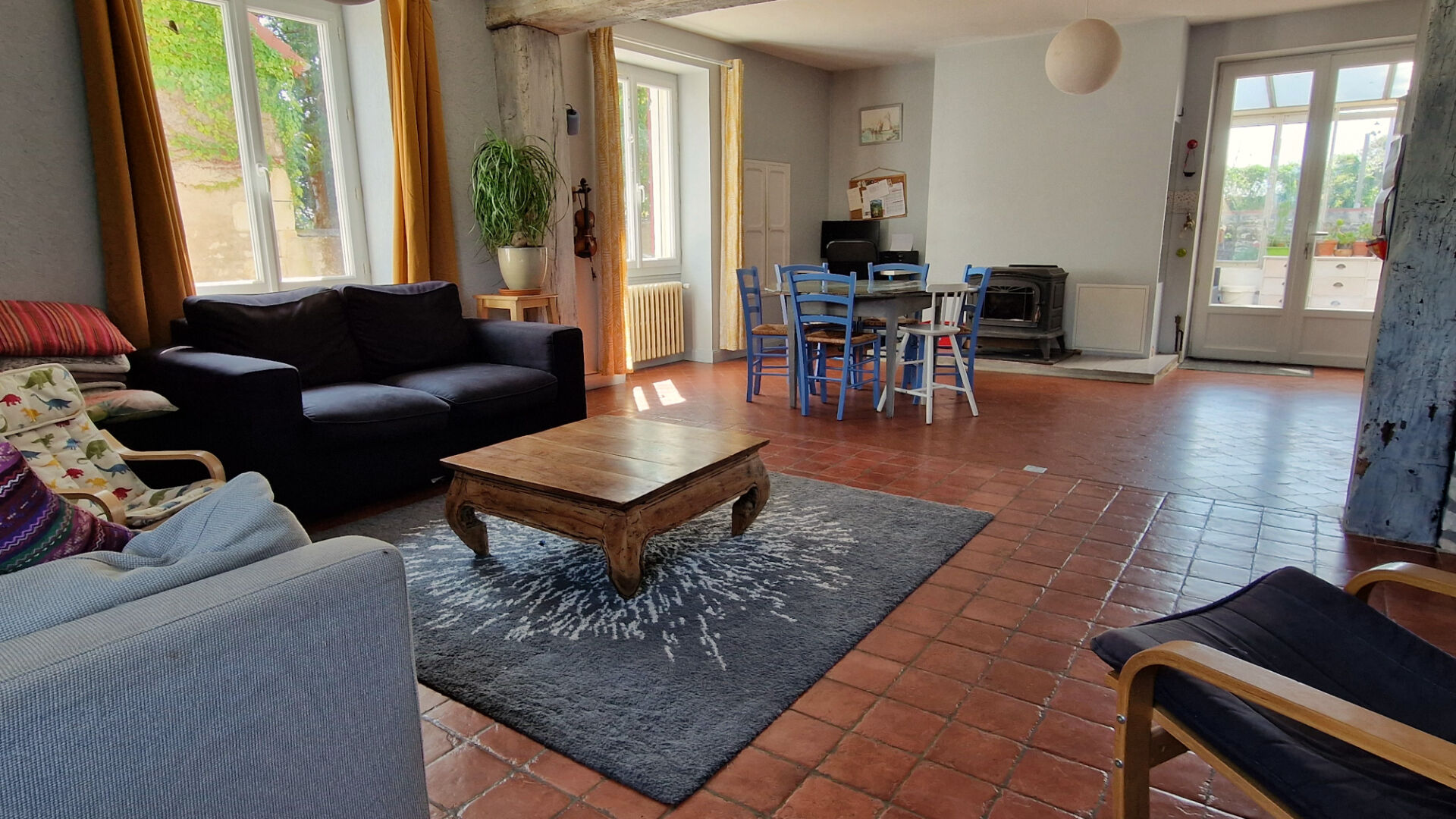 Sébastien vous propose en exclusivité, dans un hameau à l'abri des regards, cette charmante maison ancienne rénovée proposant une lumineuse pièce à vivre d'environ 45m² avec cheminée, une cuisine indépendante aménagée et équipée, ainsi que 4 chambres dont une de plain-pied. Vous apprécierez ses volumes exceptionnels, sa véranda, sa terrasse bien exposée, ainsi que ses diverses dépendances (garage, cave, atelier, ...). Jardin clos et arboré d'environ 1279m² offrant une magnifique vue sur la vallée... Envie de plus d'espaces? Vous avez la possibilité d'acquérir un second terrain, non attenant, d'environ 1800m²... Une visite s'impose...