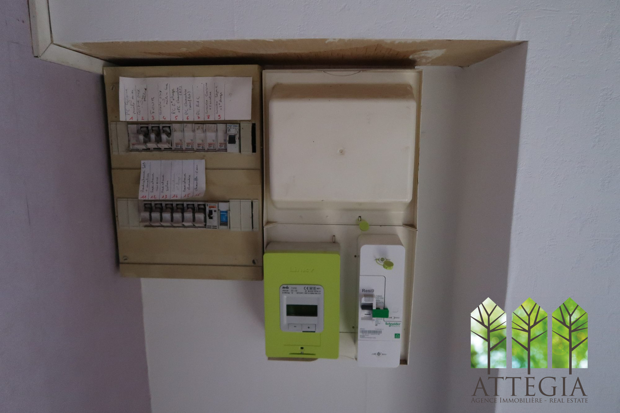 Pièce de vie de 23 m²Poêle à bois, ancien tableau électrique, compteur LinkyPlacard pouvant permettre une liaison entre les deux maisons