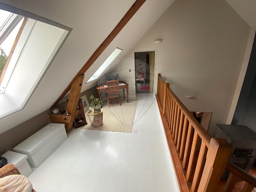 <p>À l’<strong>étage</strong>, une élégante <strong>mezzanine</strong>, idéale pour un bureau ou un espace lecture, dessert <strong>trois chambres mansardées</strong> et une <strong>salle d’eau</strong>, dans une atmosphère chaleureuse et intimiste.</p>
