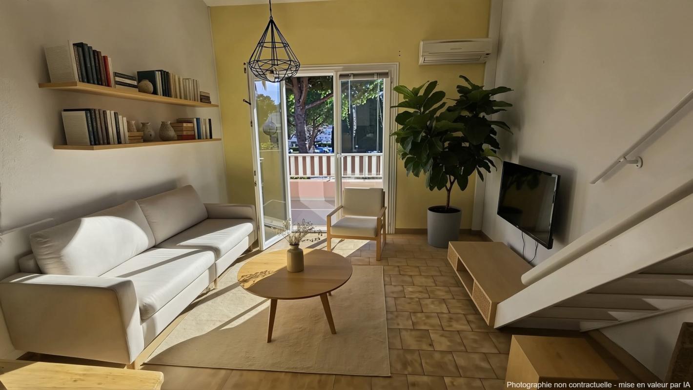 L'appartement se compose d'un séjour lumineux, d'une cuisine fonctionnelle, d'une chambre, d'une salle de bains, d'un WC separé ainsi que d'une mezzanine pouvant servir d'espace nuit supplémentaire, bureau ou rangement selon vos besoins. L'ensemble est optimisé pour offrir un espace de vie chaleureux et bien agencé. Il est equipé du double vitrage et de la climatisation reversible.