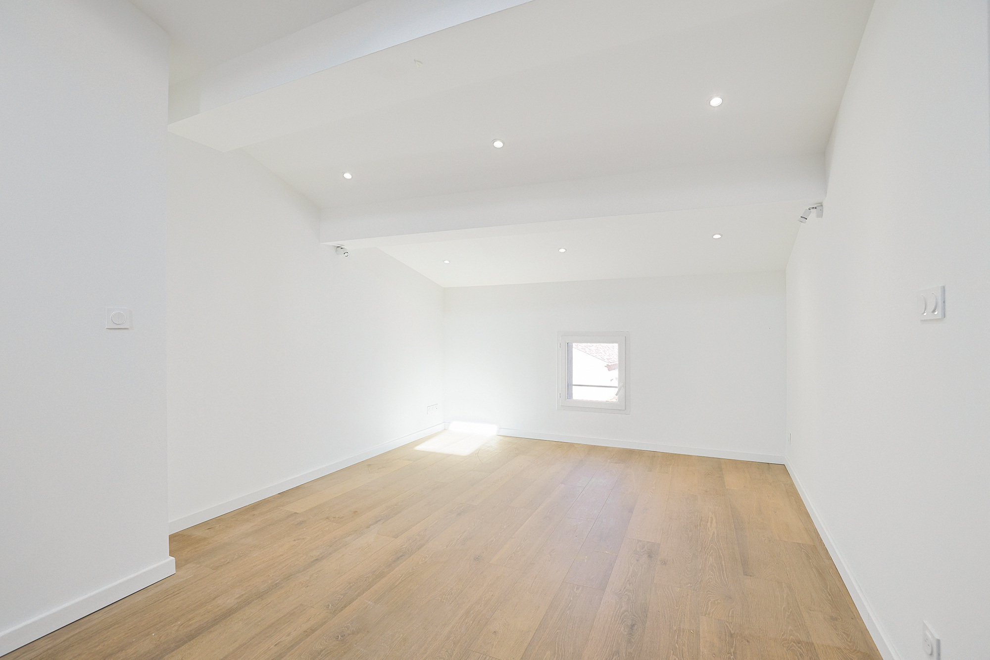 La rénovation soignée, associée aux nombreux vélux et au plafond rampant, apporte tout le charme de l'ancien rénové.