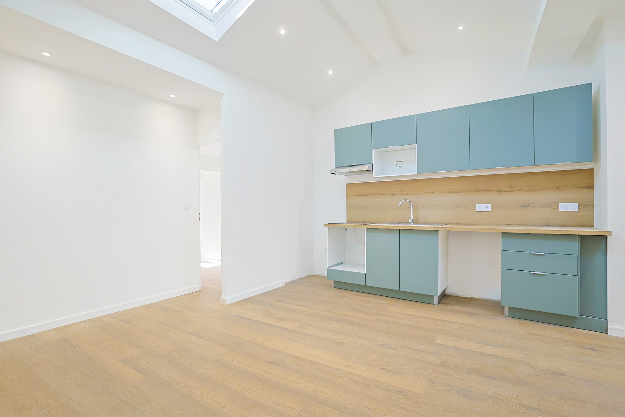 Sous les toits, la disposition des pièces et des ouvertures, ainsi que la hauteur sous plafond assez haute, font de ce bien un appartement avec un charme prononcé, atypique et lumineux.