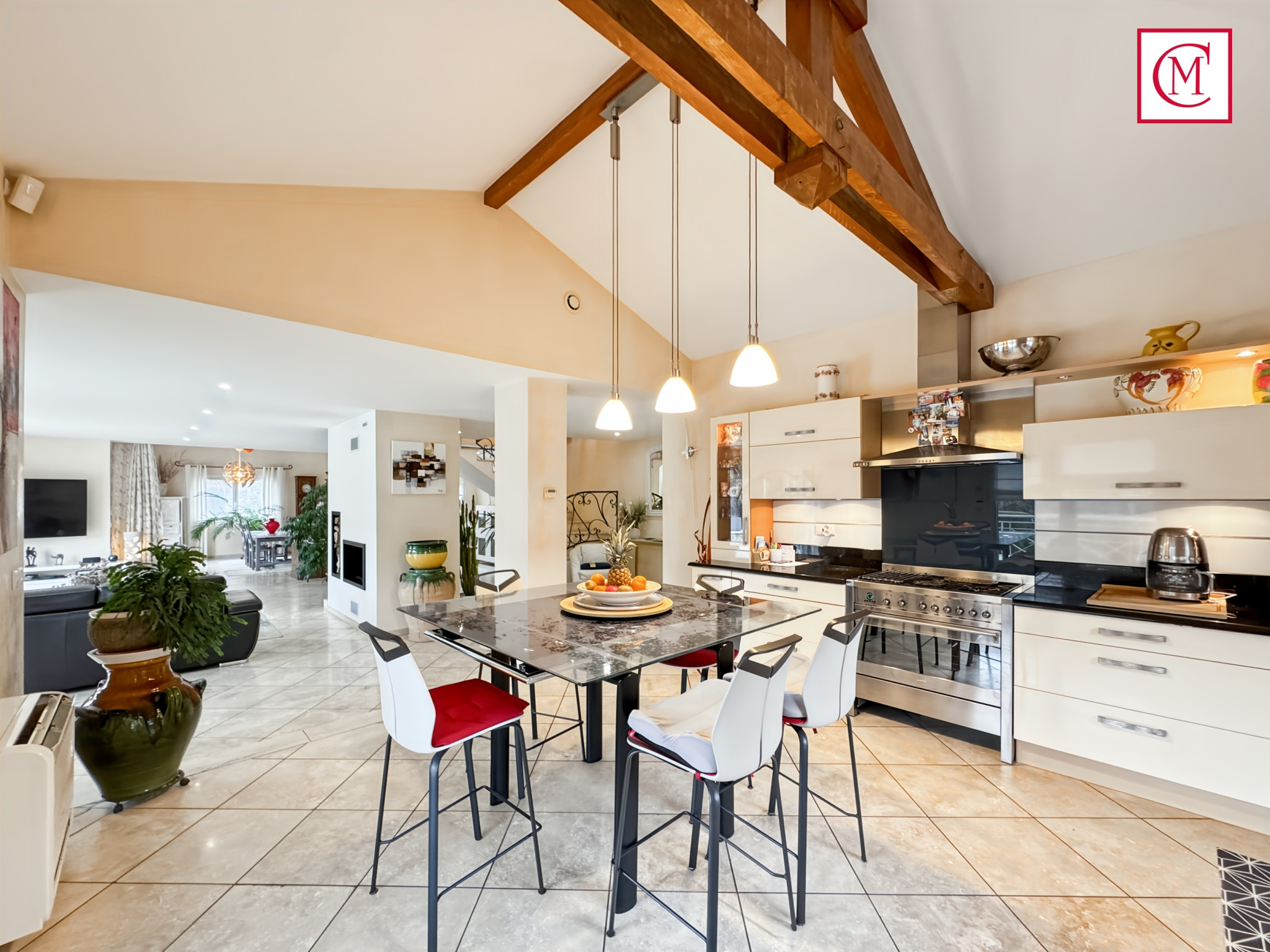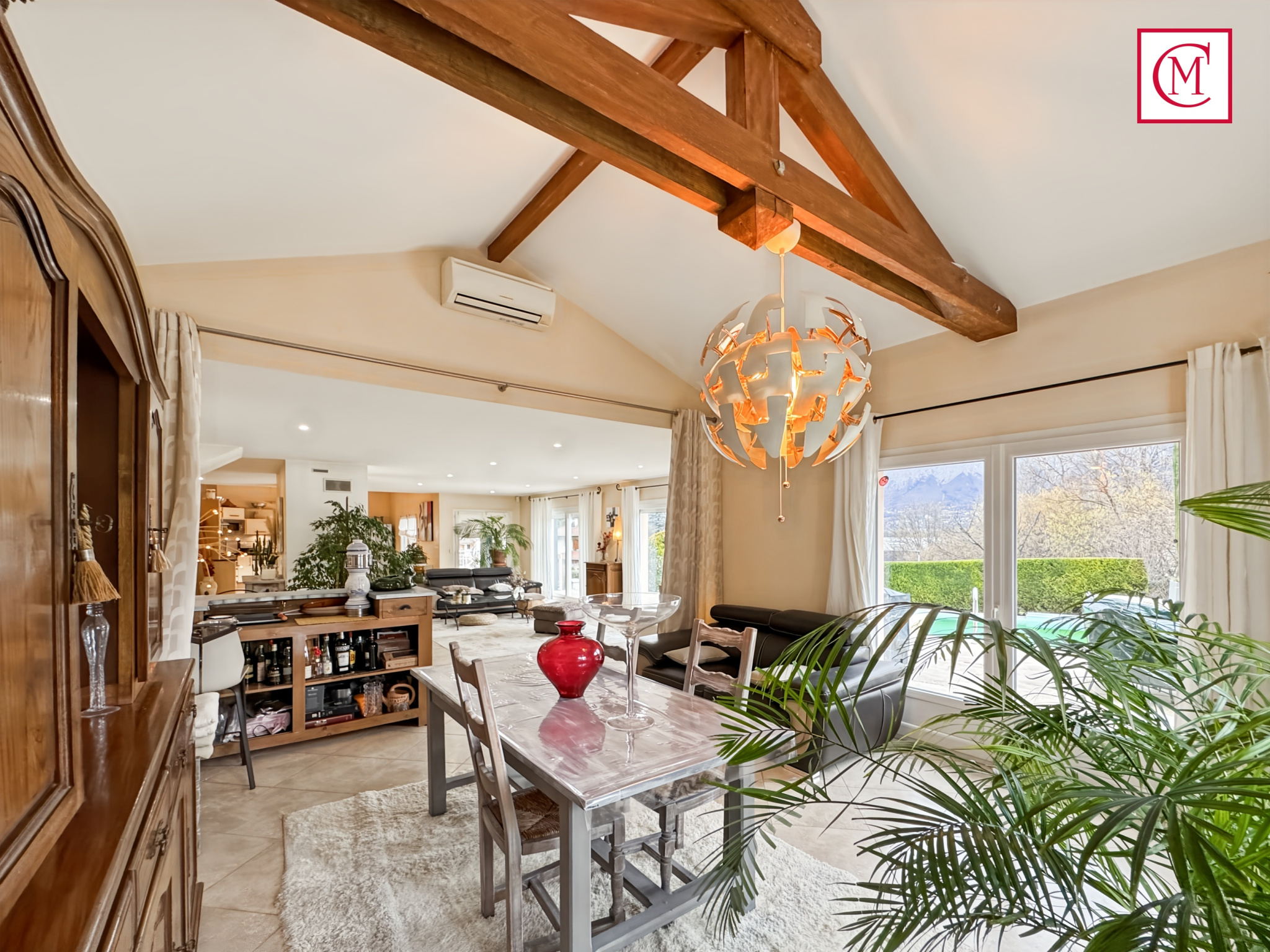 Située sur la commune de Domène, dans un environnement résidentiel au calme à proximité des commoditées. Belle villa aux prestations haut de gamme construite en 2003 d'une surface de 198m2 habitables et 277m2 utile sur un terrain clos et arboré de 1150m2 avec piscine à débordement au sel / Exposition Sud / Ouest.