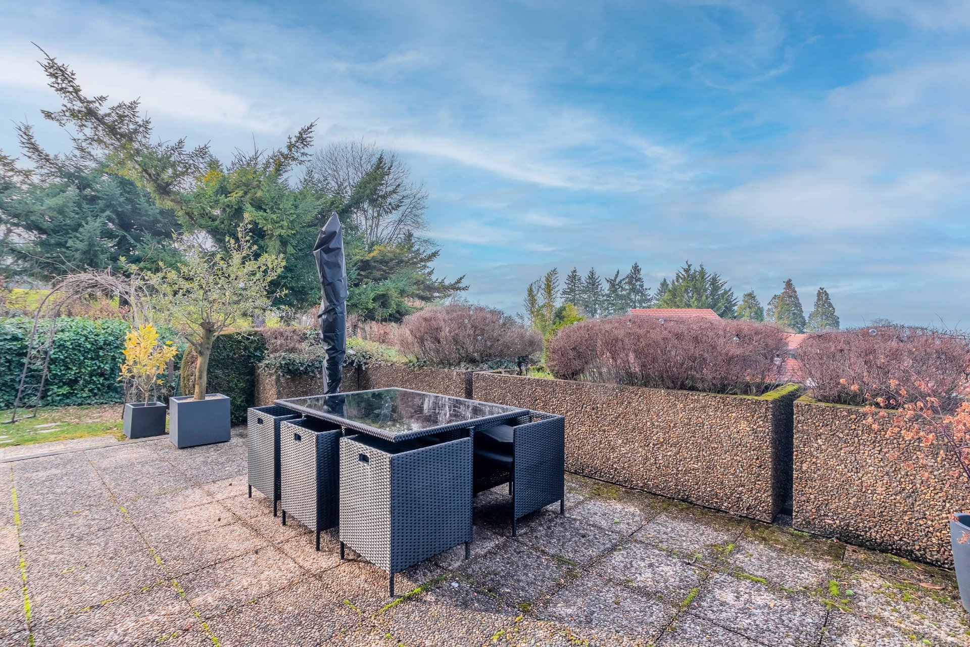 Cet espace s’ouvre sur une terrasse exposée ouest avec vue immédiate sur le golf.