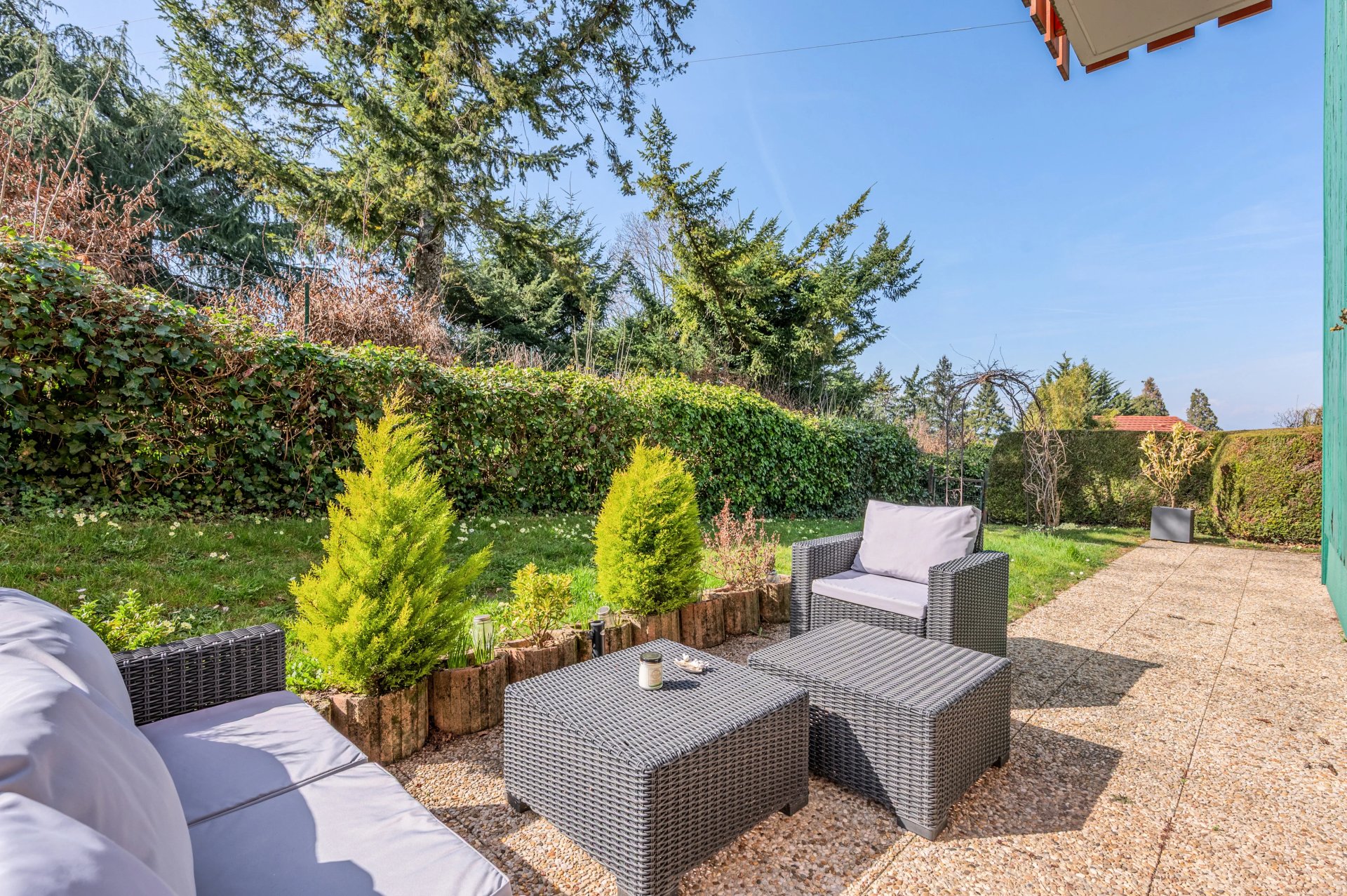 Une terrasse et ses espaces verts en continuité, entourent l’appartement sur ses trois expositions, créant un véritable prolongement extérieur.