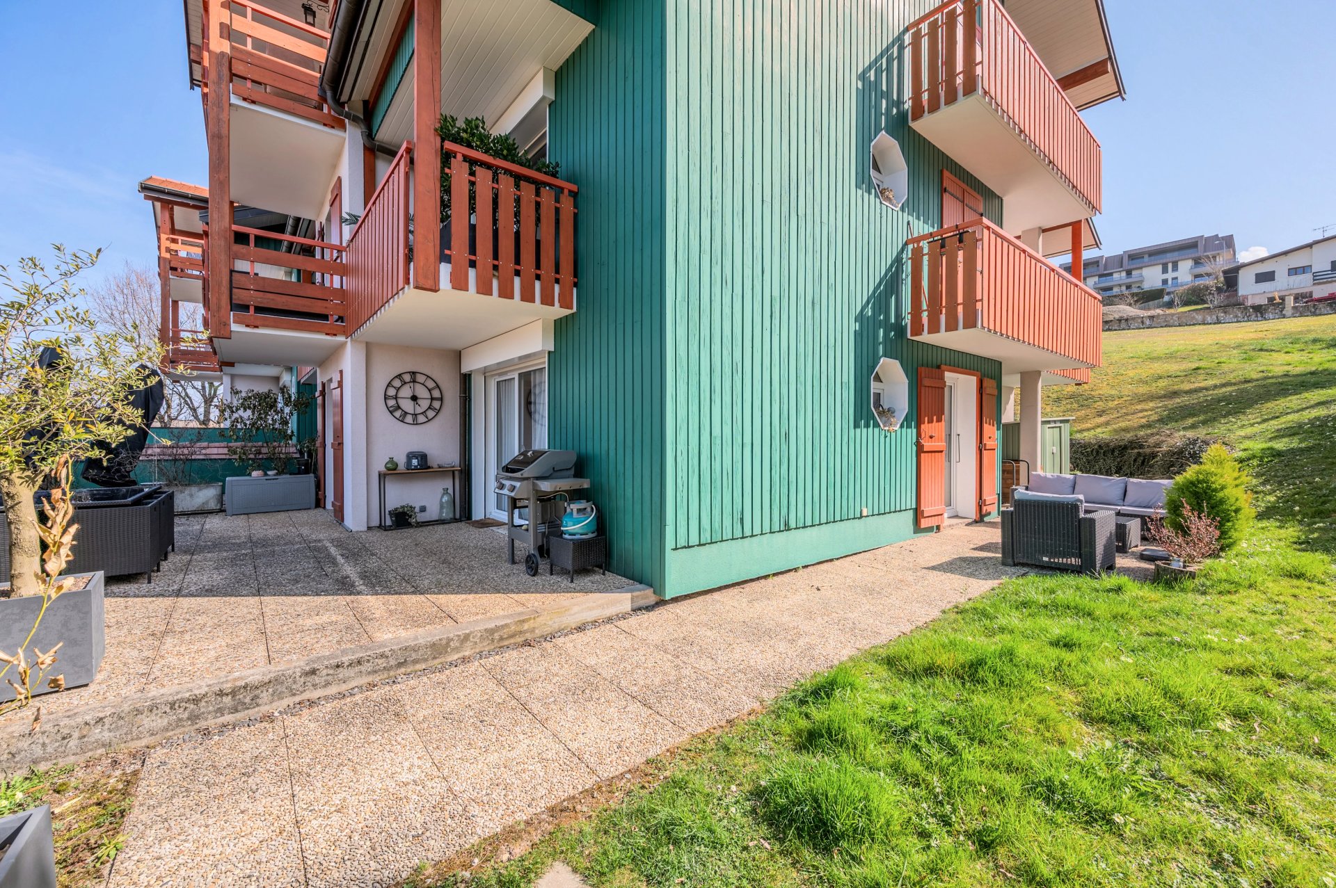 Situé au premier étage d’une résidence calme et arborée, à proximité immédiate du Golf d’Évian Resort, ce grand T2 traversant de 60 m² bénéficie d’une triple exposition sud, ouest et nord, offrant une luminosité exceptionnelle tout au long de la journée.