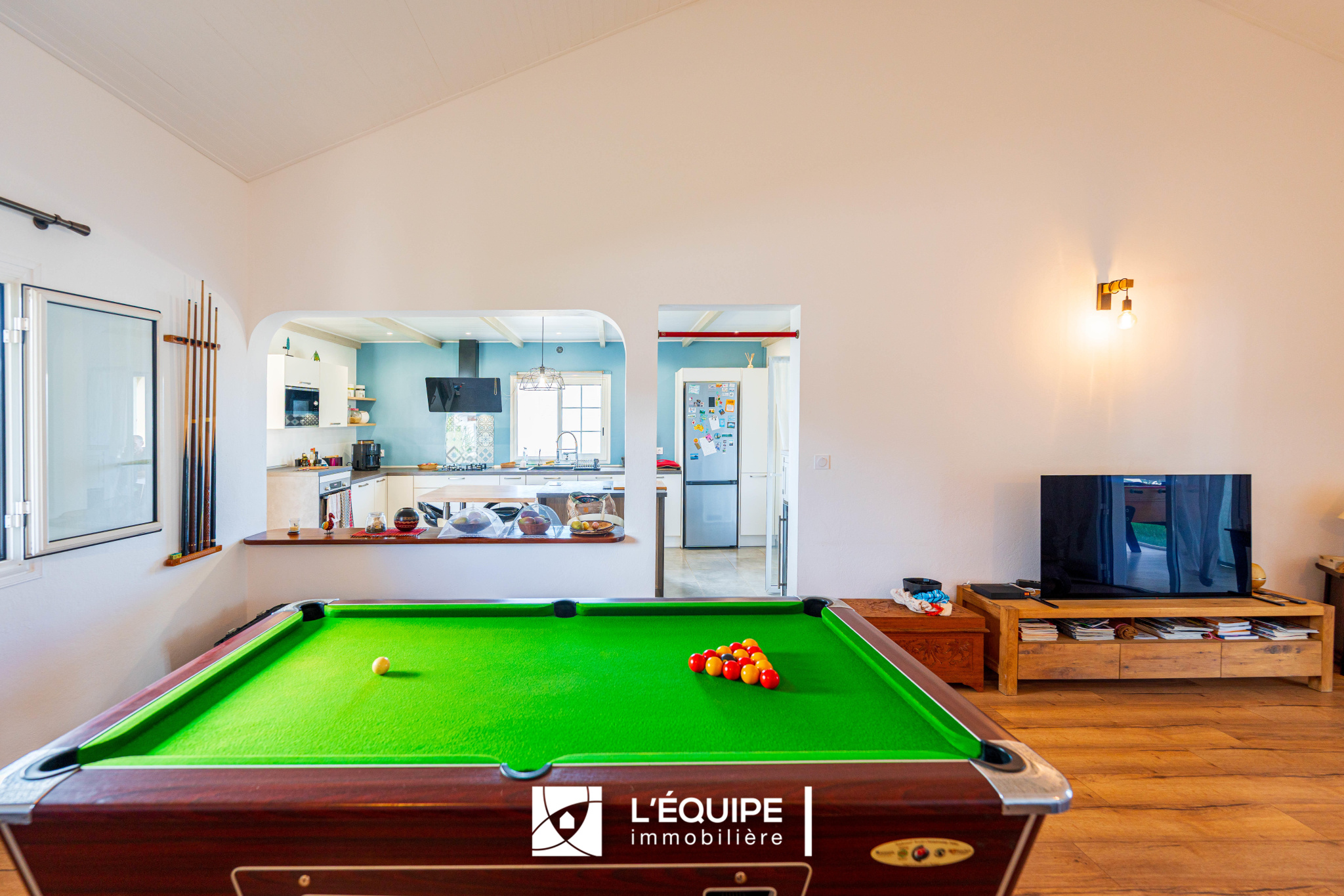 L'Equipe immobilière vous propose à la vente cette agréable maison de 146m2 habitables sur terrain plat de 572 m2, arboré de fruitiers.
