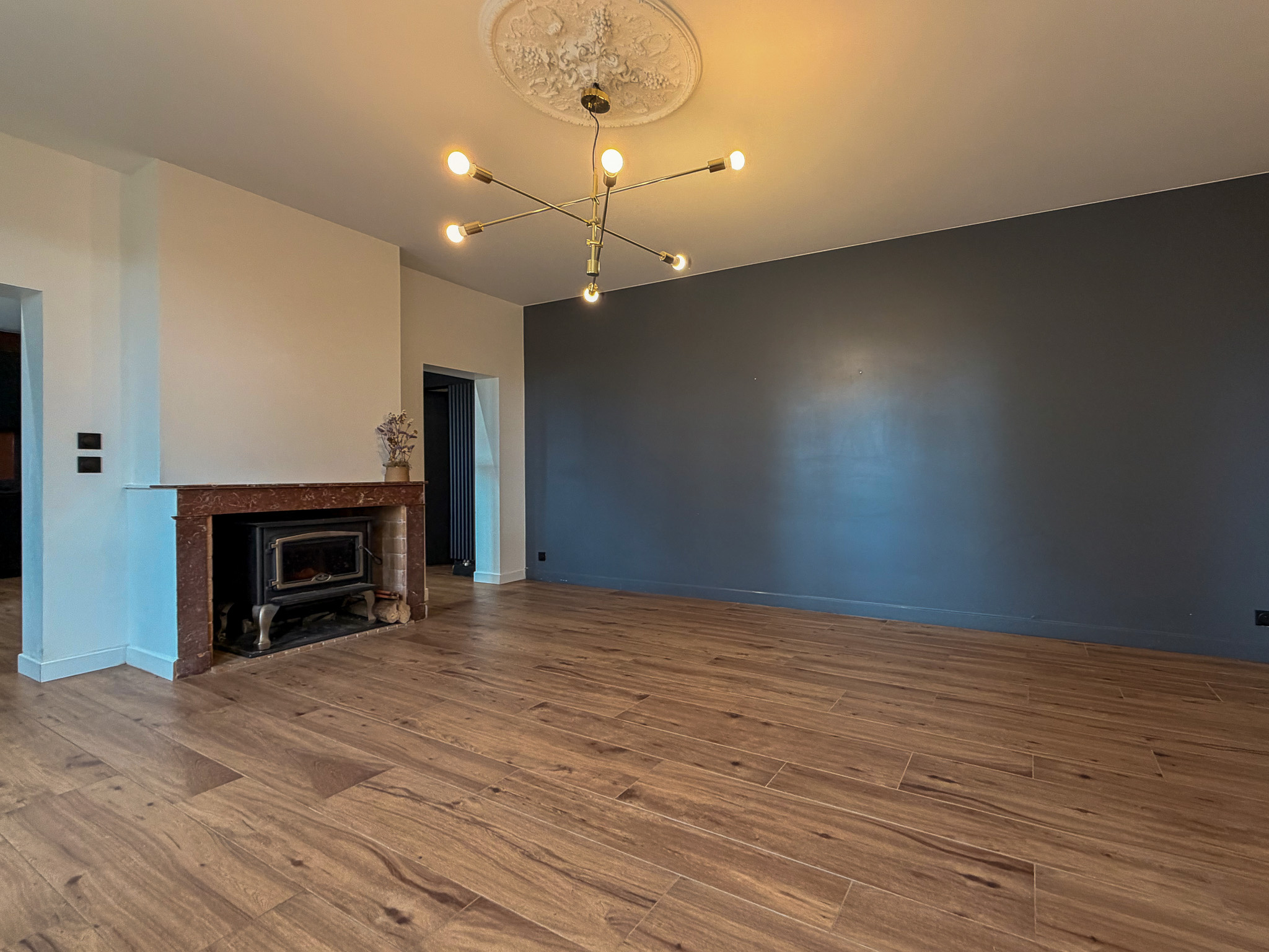 La maison développe environ 350 m2 habitables et se distingue par ses pièces de vie généreuses. Les salons, totalisant plus de 60 m2, séduisent par leurs murs en pierre, leurs hauteurs sous plafond et leur atmosphère chaleureuse. La cuisine, contemporaine et fonctionnelle, s'ouvre sur une pergola bioclimatique, idéale pour prolonger les espaces de vie vers l'extérieur.