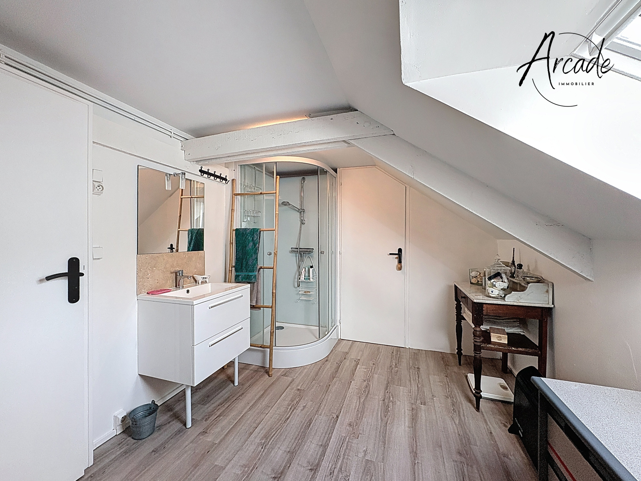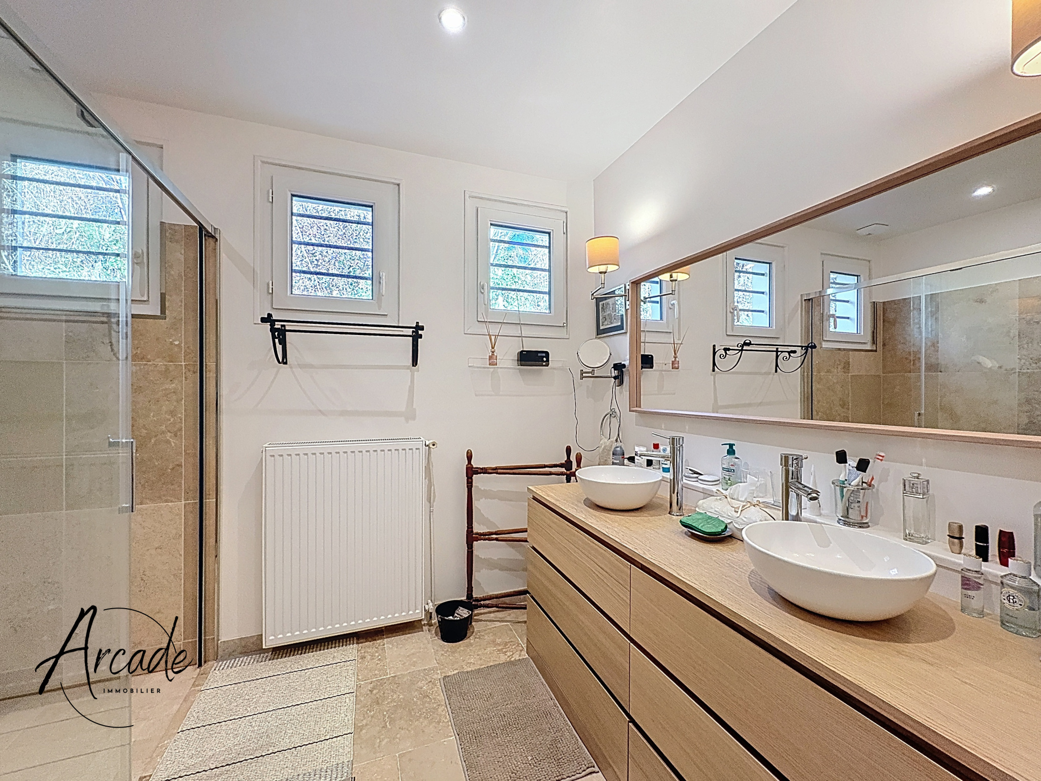Hall d'entrée 24 m2, séjour-salon 48 m2, très lumineux exposé sud, cuisine aménagée, belle chambre 16 m2, salle de douche à l'italienne, bureau, terrasse, wc.