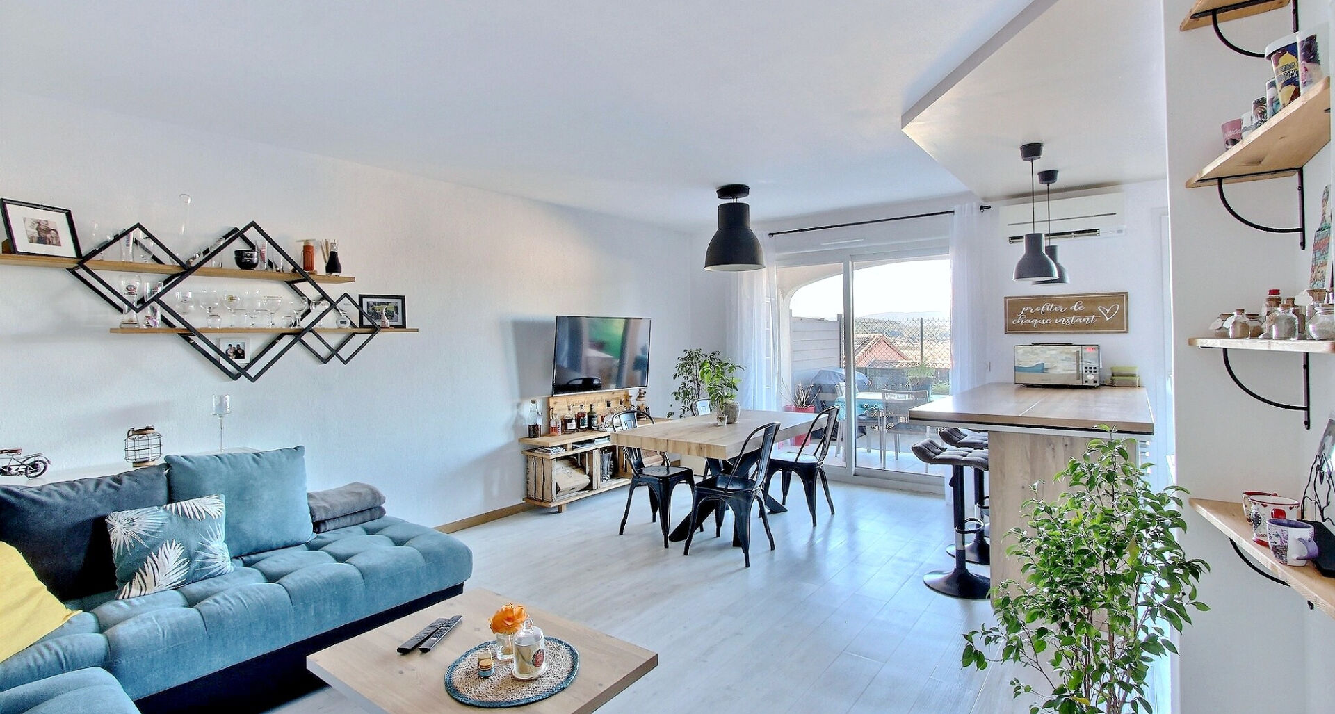 Dans une résidence sécurisée en copropriété, cette maison mitoyenne par le garage sur trois niveaux offre des volumes généreux et un agencement idéal pour toute la famille. En souplex, vous profiterez d'un séjour lumineux et d'une cuisine ouverte donnant sur une terrasse couverte avec vue dominante sur le village, parfaite pour les repas et moments en extérieur.