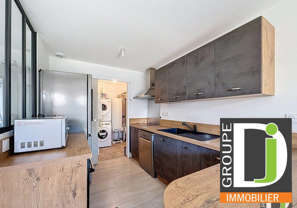 Une cuisine équipée ouverte sur un salon-séjour baigné de lumière