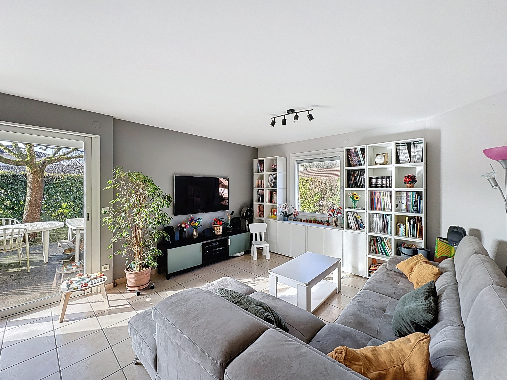 Implantée sur une parcelle de 647 m2, la propriété dispose également d'un garage accessible directement depuis l'intérieur, ainsi que de deux places de stationnement privatives à l'avant de la maison.