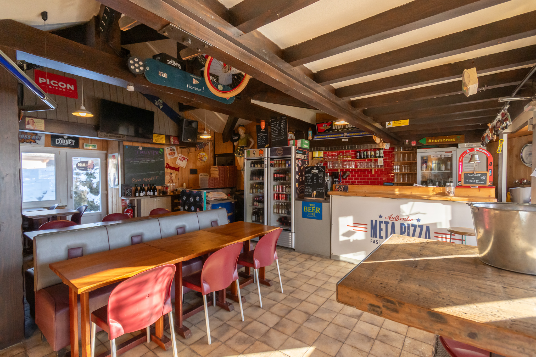 A deux minutes des pistes de ski, proximité cinéma, zone commerciale de Métabief, murs commerciaux à vendre aménagés en restaurant, comprenant un local commercial de 74 m2 et 2 caves pour 48m2, avec une vitrine et terrasse, accès parking, très bien exposé. Possibiltés tous commerces, libre de suite.