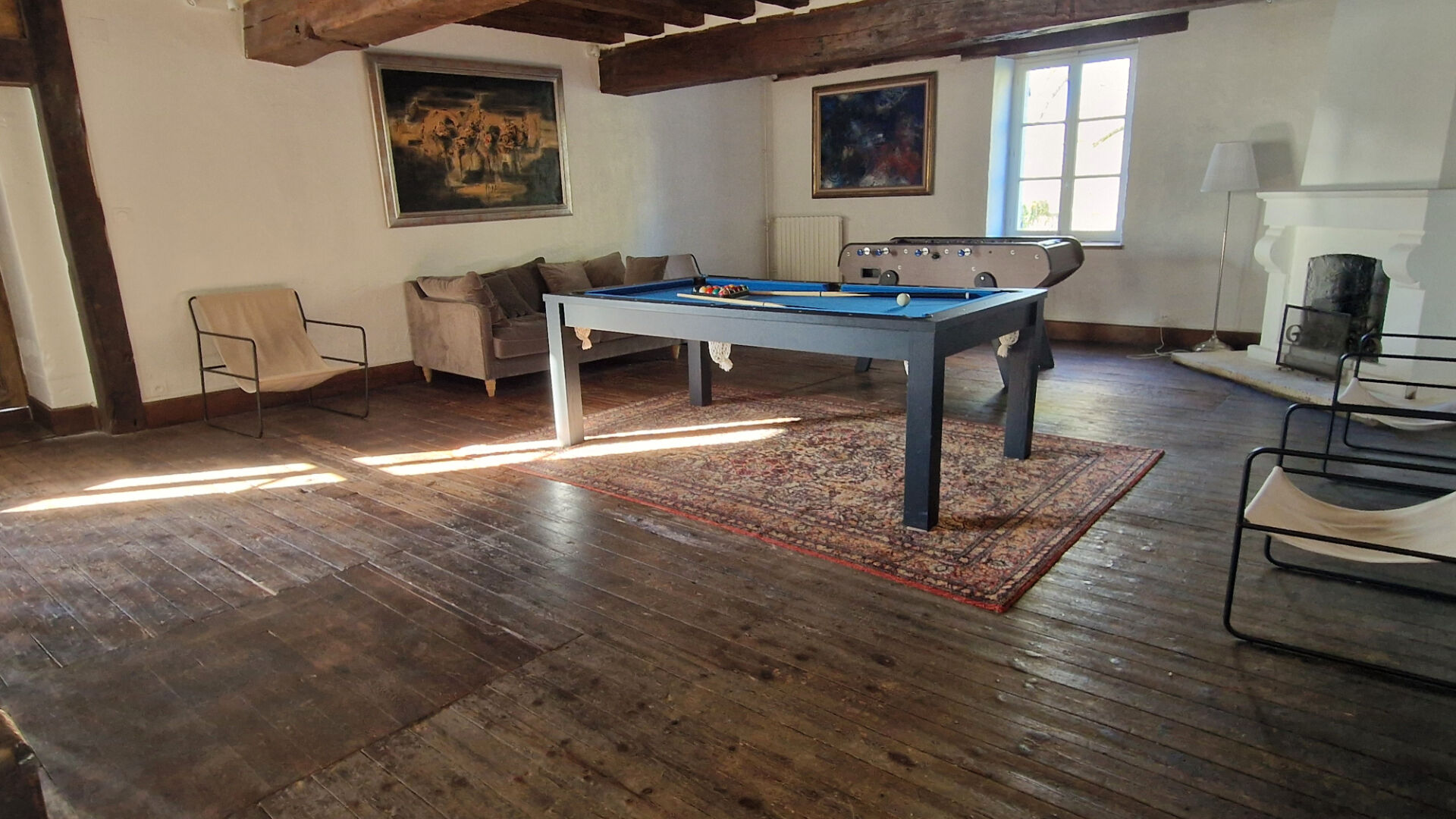 La maison principale vous offre sur trois niveaux, un hall d'entrée, une grande salle de réception avec cheminée, un salon magnifié par les poutres et l'ancienne machinerie du moulin, cuisine traiteur, arrière-cuisine, 8 grandes chambres meublées et décorées avec finesse, salles de bains mixtes avec douche et baignoire, salon de télévision et salle de billard.
