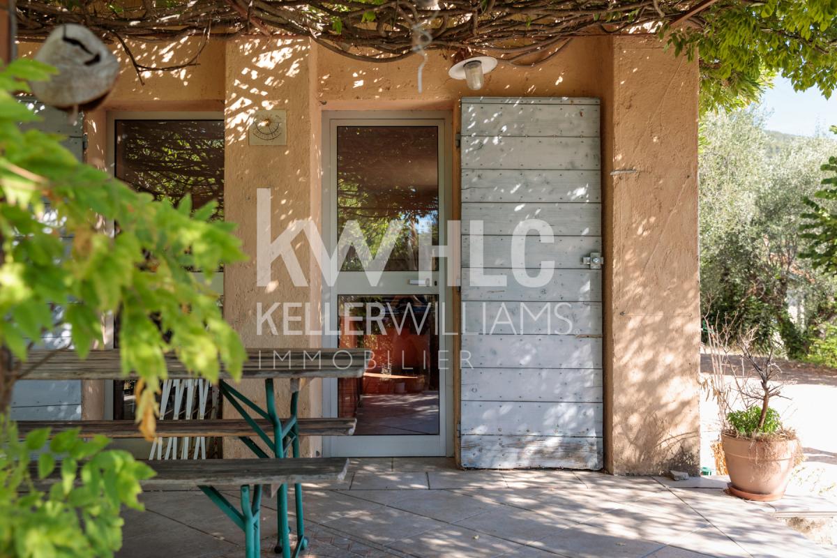Le terrain clos de 1 485 m², piscinable, est organisé en restanques, la maison étant implantée sur la partie haute, tandis que le reste du jardin se développe en contrebas, dans un esprit typiquement méditerranéen. Il bénéficie d'une exposition agréable et d'une vue dominante sur la mer, la ville et les collines environnantes.