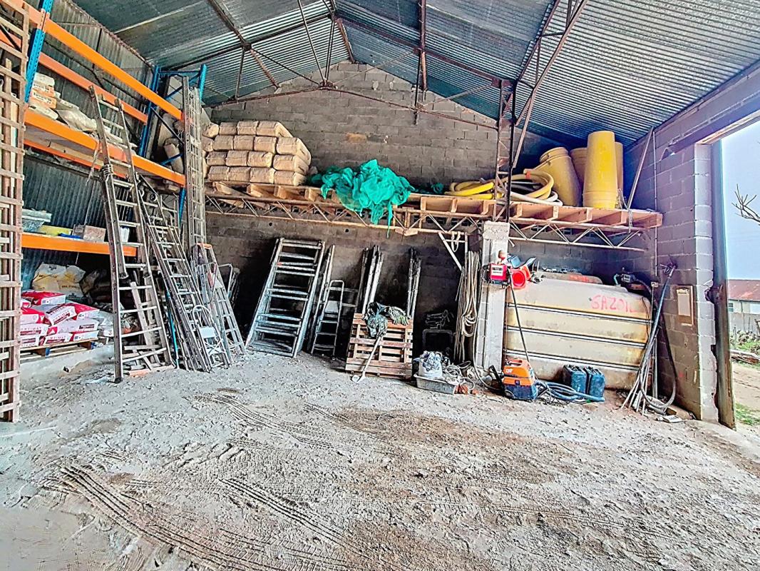 Un premier espace d'environ 125 m², Accessible via une grande porte battante et une porte coulissante, facilitant le passage d'utilitaires ou de machines agricoles