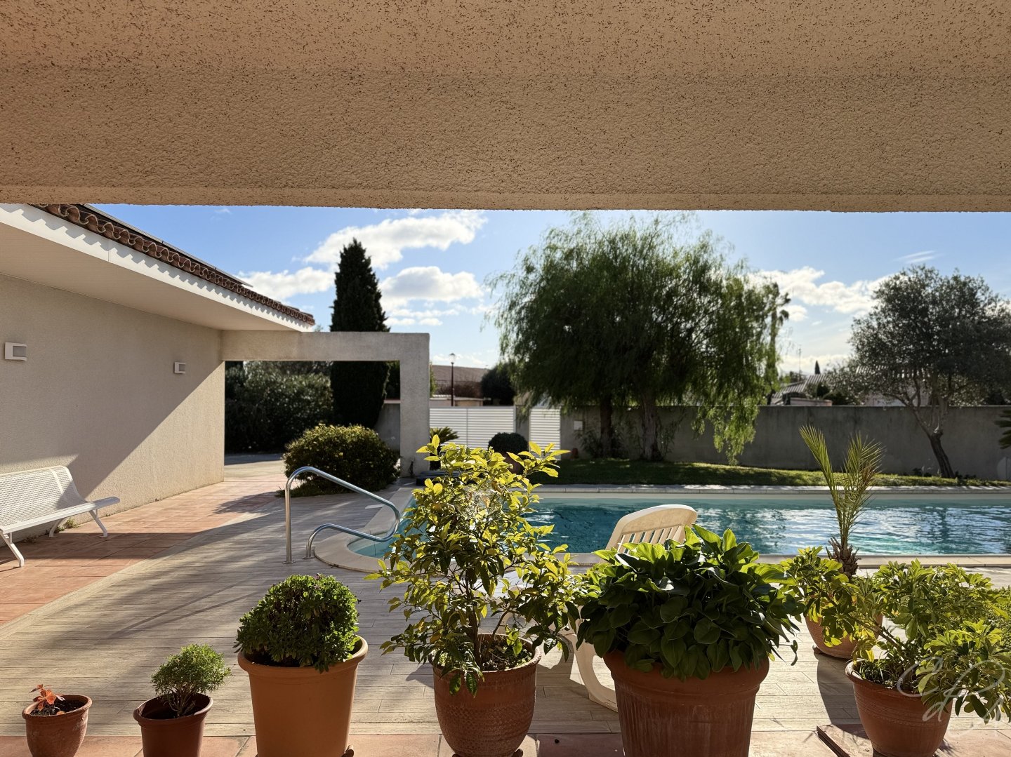 Des lignes harmonieuses, un magnifique toit maçonné à pan coupé, de grandes surfaces vitrées garantissant une formidable luminosité, ce sont là les principales caractéristiques de cette élégante villa d'architecte résolument contemporaine, idéalement située dans un quartier ultra résidentiel à l'est de PERPIGNAN, à mi-chemin entre Médipole et Château-Roussillon. Outre un séjour cathédrale de 71 m² et une confortable cuisine, la maison compte deux chambres en rez-de-chaussée tandis qu'à l'étage une vaste mezzanine annonce deux chambres supplémentaires avec ouverture sur un solarium. Le garage de 38 m² ajoute au confort de l'ensemble tout autant que la piscine maçonnée 10 X 5 parfaitement exposée. A voir.