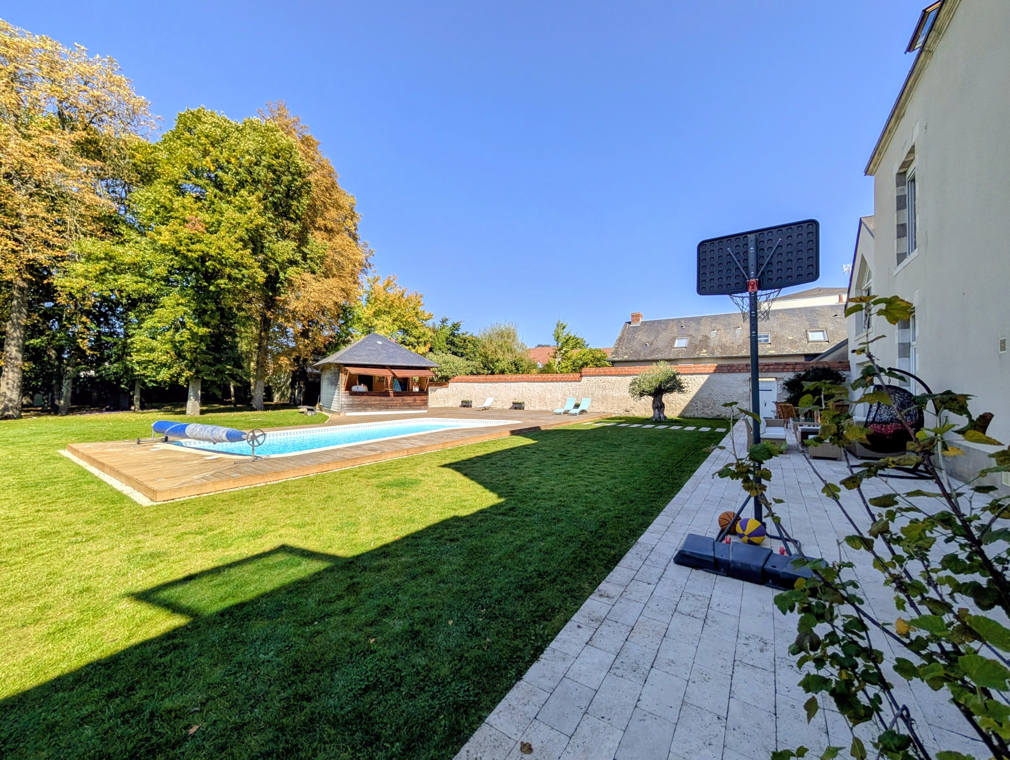 Il s'agit d'une propriété de charme d'une superficie de plus de 400 m2 habitables, située en première couronne Est d'Orléans. De l'architecture d'une maison bourgeoise, cette demeure avait bénéficié d'une rénovation pour lui attribuer des prestations contemporaines de qualité. Sur un terrain clos de plus de 2 600 m2, elle se compose d'un hall d'entrée, une grande cuisine largement aménagée ouvrant sur la terrasse et le jardin avec pisicne, un superbe séjour de plus de 70 m2, lui-même ouvrant sur la cour intérieure paysagée, une salle à manger et un bureau, pour le rez-de-chaussée. Au premier étage, la bâtisse comprend une grande mezzanine (espace TV et jeux), une suite parentale avec salle de bains et douche ainsi qu'un dressing, une autre chambre et une salle de sport ou détente. Au dessus, encore deux belles chambres et une salle d'eau. La propriété dispose également d'une dépendance aménagée en T2 avec son accès indépendant (pour les amis, le louer ou encore exercer une activité inidépendante), d'un grand garage (environ 60 m2) et d'une belle cave ainsi que de très belles galeries aménagées en profondeurs. La cour d'honneur est pavée et joliment paysagée, peut accueillir plusieurs véhicules pour les convives avec notamment un car port équipé d'une borne de recharge électrique. Alliant le charme et les prestations contemporaines (cheminée double foyer, alarme, chauffage au sol en partie au rez-de-chaussée...) elle concilie les atouts d'une demeure familiale tout en garantissant les proximités de la ville, écoles et des transports (tram et bus), les sentiers de la Loire se situant à 100 mères. Cette propriété de ville vous séduira par ses surfaces, sa luminosité et ses volumes mais également par l'ensemble de ses prestations dont le superbe jardin avec la piscine et sa terrasse aménagée avec un chalet servant de bar comprenant une douche et le local technique. Les informations sur les risques auxquels ce bien est exposé sont disponibles sur le site Géorisques : www.georisques.gouv.fr. Gilles Dresch 06.22.85.04.86 cabinetderocquigny.com