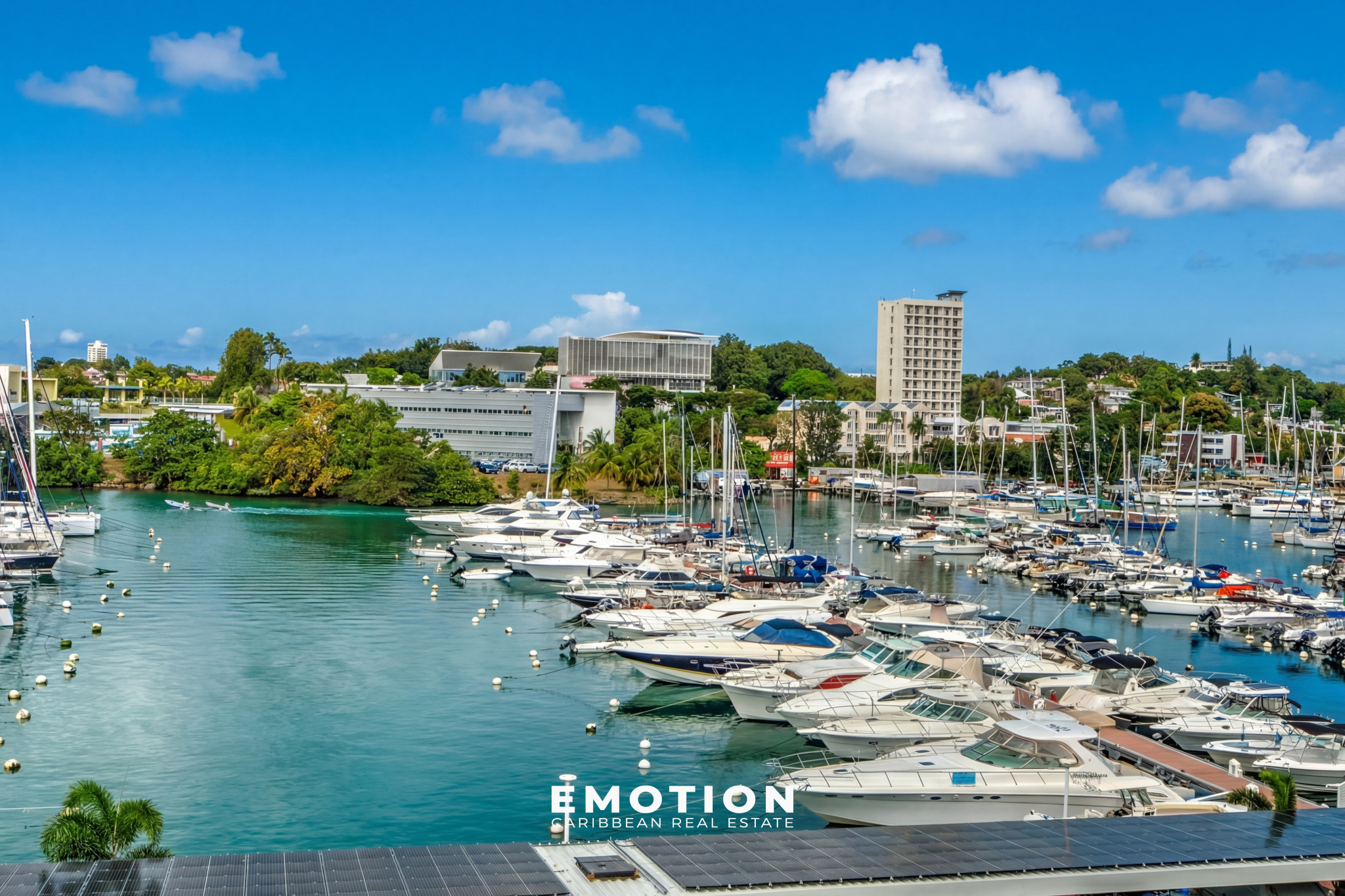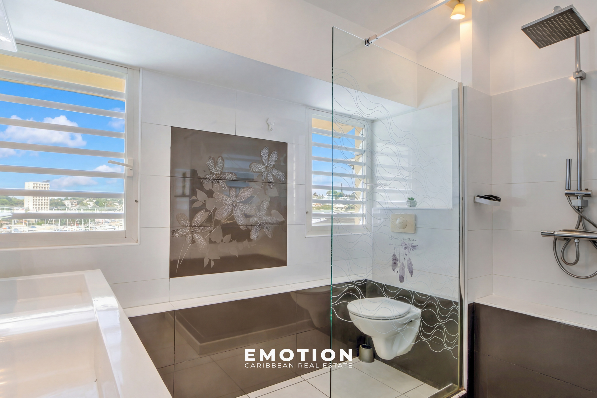 Le cabinet Emotion Real Estate Guadeloupe vous propose à la vente, à l'abri des risques de submersion, en angle et au 5e et dernier étage d'une résidence sécurisée avec portail électrique, un bien mitoyen d'un seul côté, offrant une vue panoramique à 180o sur la mer et les marinas du Gosier. Ce bien bénéficie d'une vue et d'un emplacement exceptionnels. Accès direct à la marina, commerces, restaurants et supermarchés.