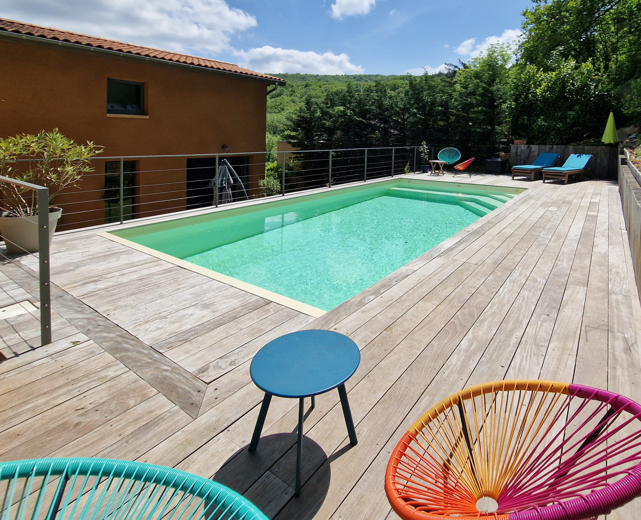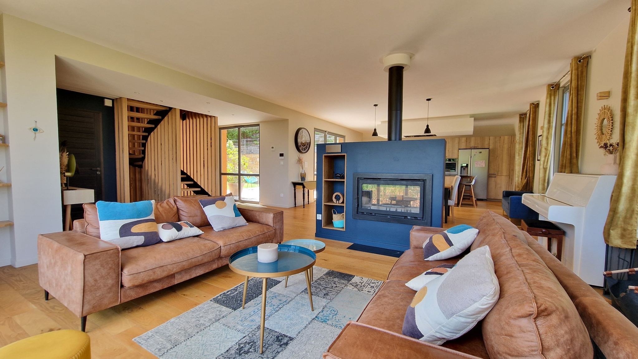 La parcelle de 895 m2 se compose d'un jardin aménagé d'une terrasse, et en surplomb d'un mur en pierres dorées, une deuxième terrasse avec piscine chauffée et sécurisée par volet immergé. L'ensemble est au calme à l'abri des regards dans un ensemble mixte de nature et d'habitat individuel préservé. L'accès à la propriété se fait par un chemin pavé dans la continuité de l'entrée de la maison desservant un garage double de 52 m2 et un atelier de 27 m2. Le chauffage est assuré par pompe à chaleur au sol sur tout l'espace de vie et, par radiateurs dans les chambres. Le DPE est excellent avec un double 'A'. Le montant estimé des dépenses annuelles d'énergie de ce logement pour un usage standard est compris entre 650 EUR et 920 EUR sur les années de références 2021, 2022 et 2023.
