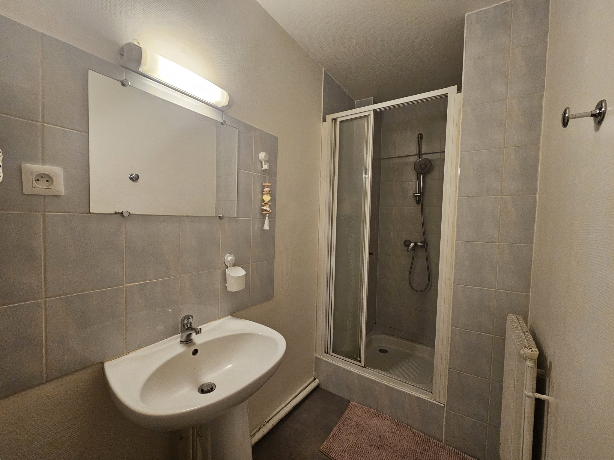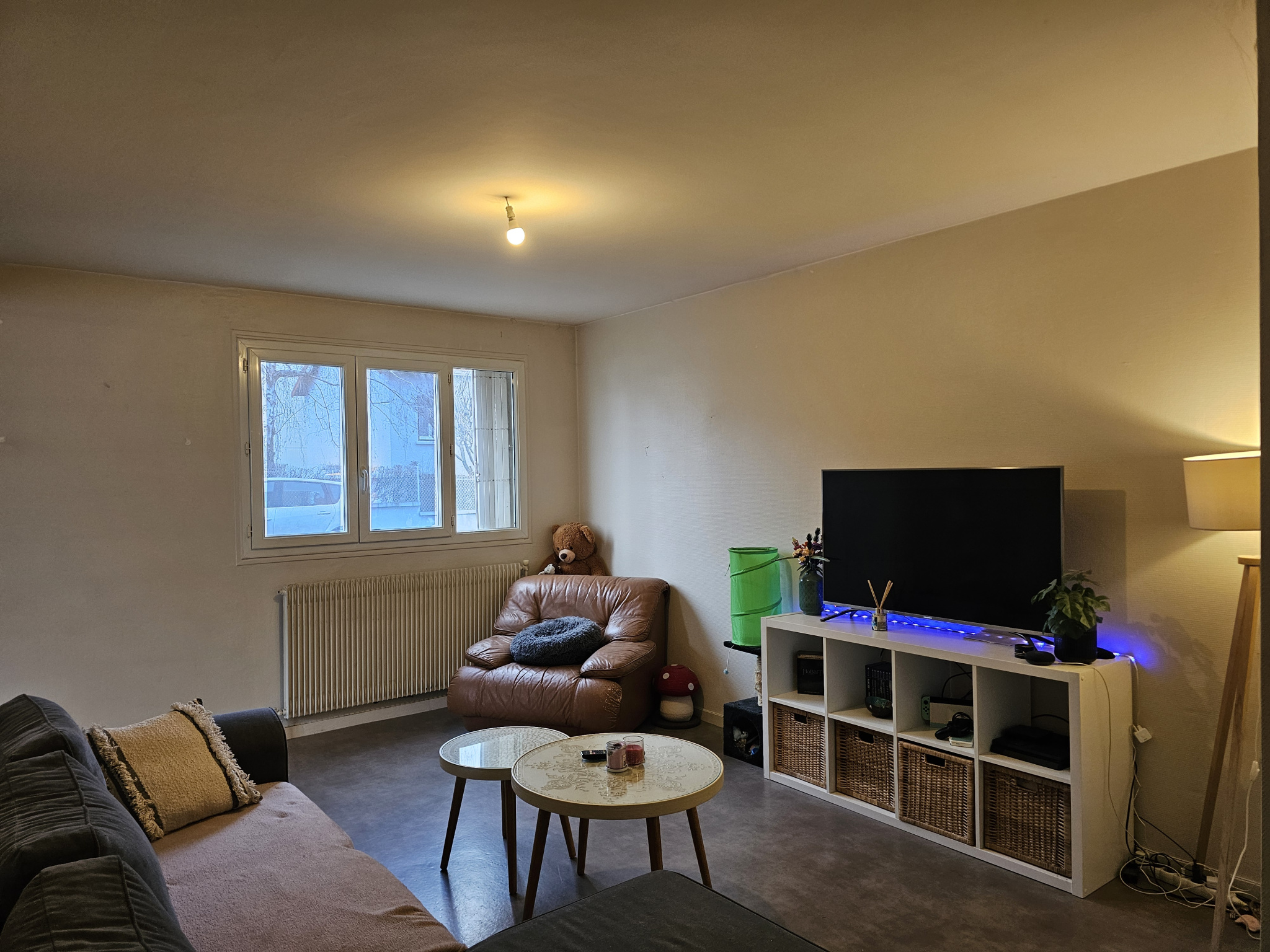 Dès l'entrée, un salon de plus de 22m2 avec un dégagement de 9 m2 pouvant faire office de deuxième chambre, une cuisine semi-équipé de 10m2 avec arrière-cuisine, un WC séparé et une salle de douche de 3,5 m2. Chaudière individuelle Gaz, Fibre, Double vitrage, quelques rafraichissements à prévoir.