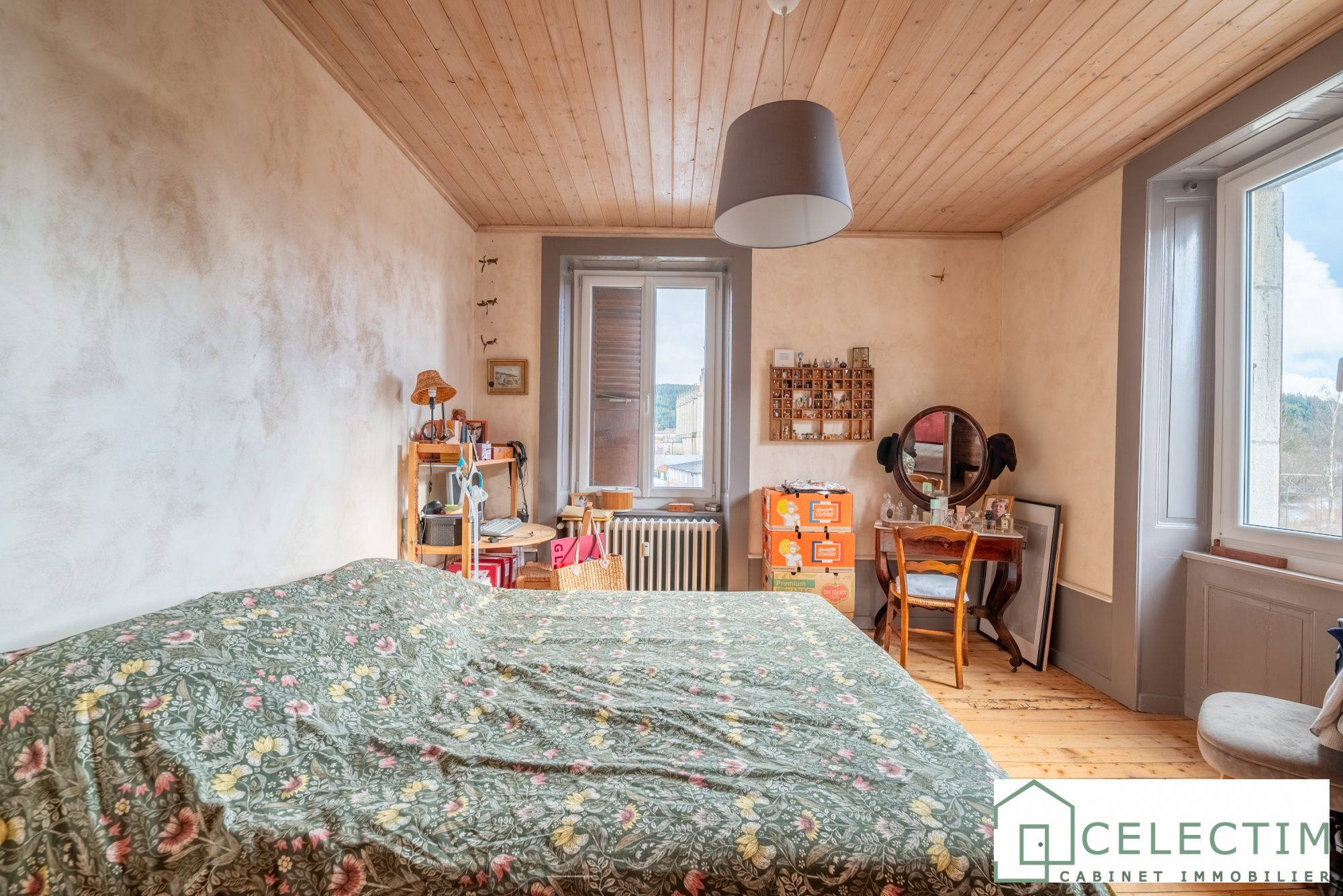 Au 1er étage d?une ancienne scierie de 1904, au sein d?une copropriété de trois logements, cet appartement traversant séduit par son cachet et son ambiance chaleureuse et sa luminosité.