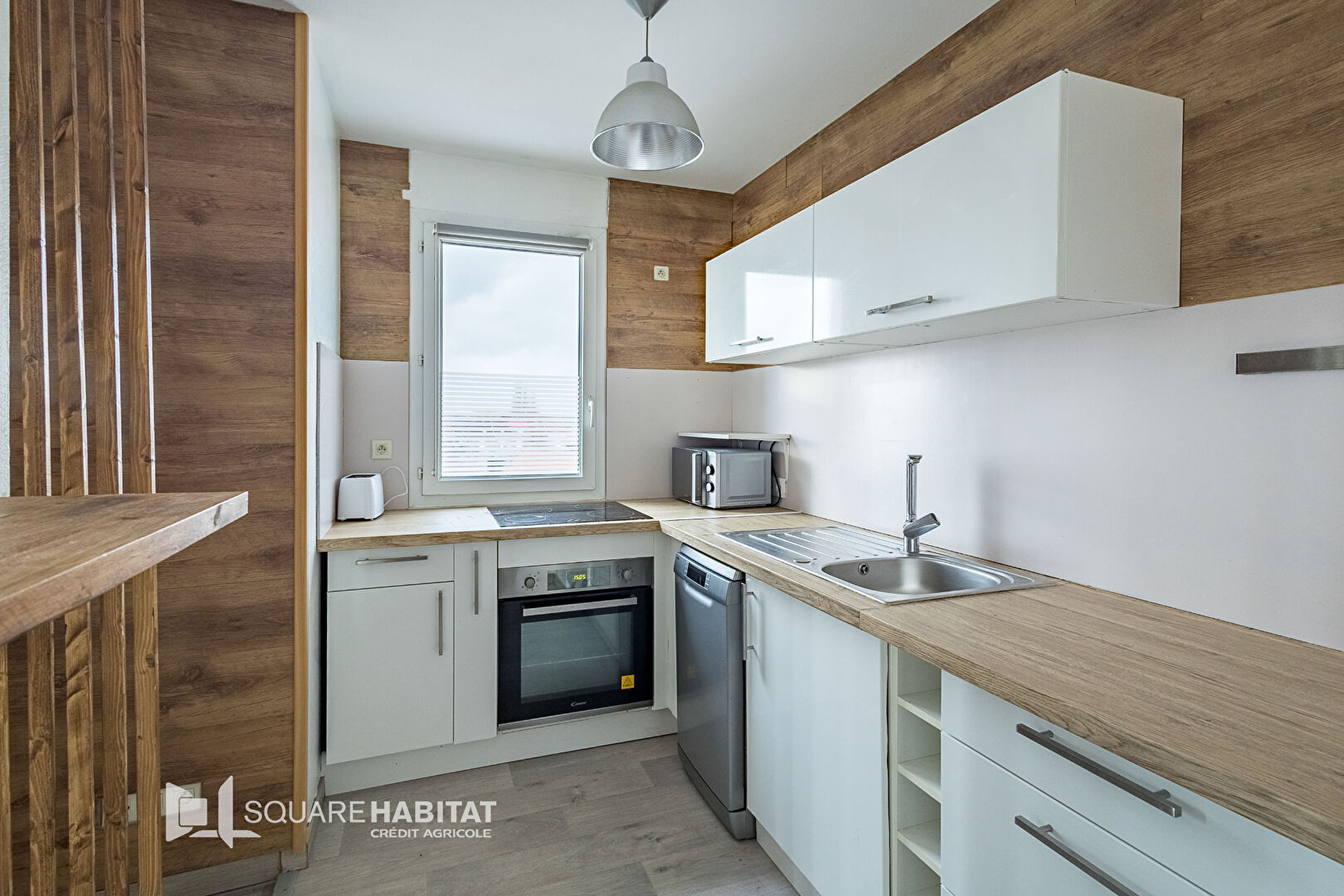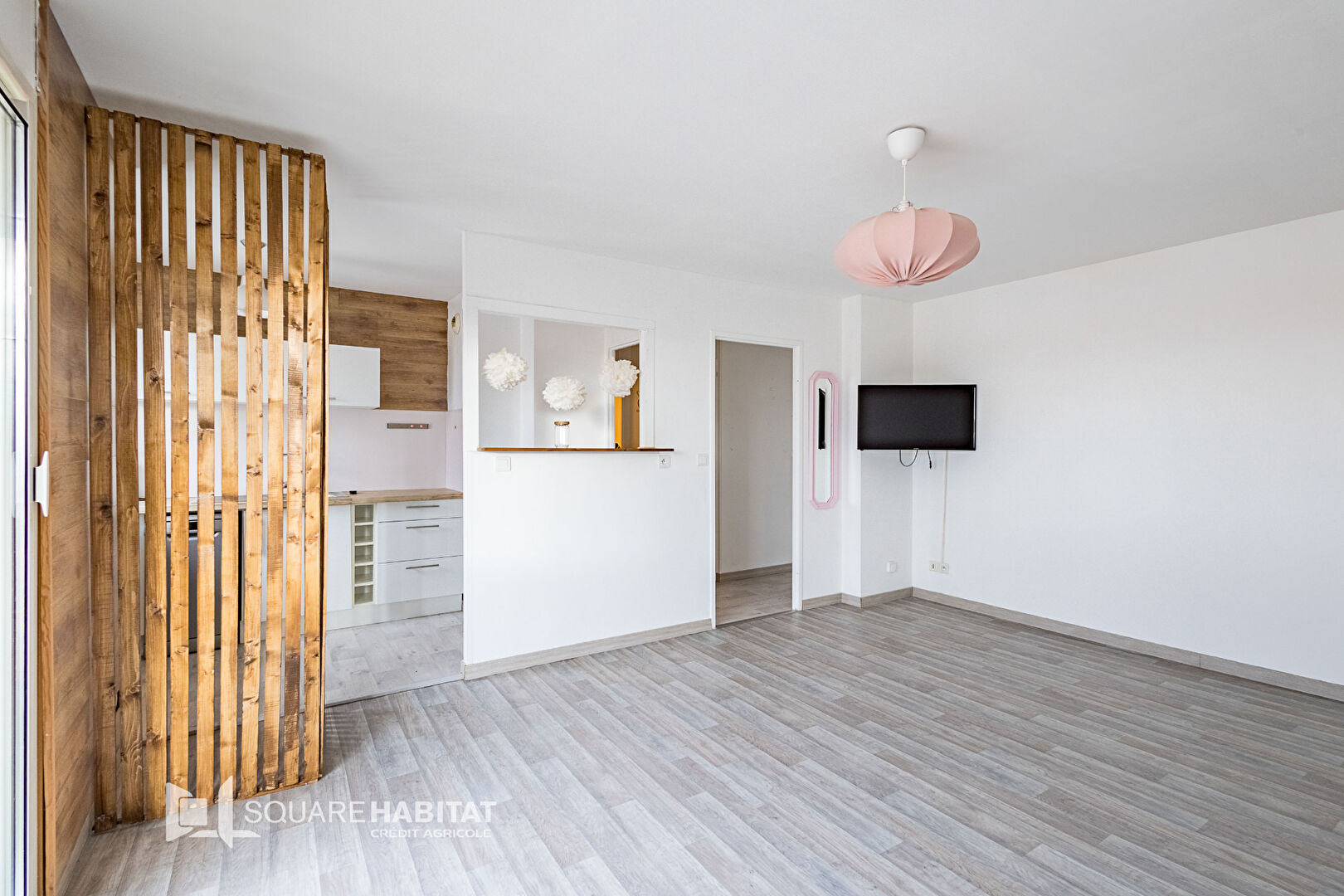 Un hall dessert un WC séparé, un lumineux séjour donnant sur un balcon, une cuisine équipée récente.
