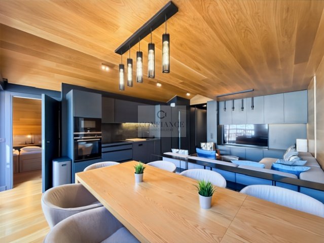 Superbe appartement situé au dernier étage, offrant une vue panoramique exceptionnelle sur le domaine skiable.
