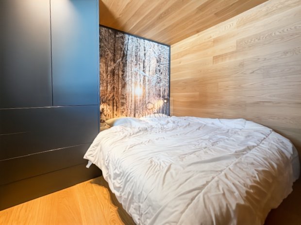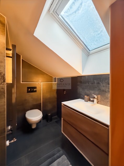 D'une surface au sol d'environ 73 m², entièrement aménagé et conçu par un architecte d'intérieur, il se compose d'un séjour lumineux avec cuisine équipée, ouvrant sur une terrasse de 15 m², de deux chambres, d'une chambre-dortoir, d'un coin buanderie et de deux salles de douche avec WC.