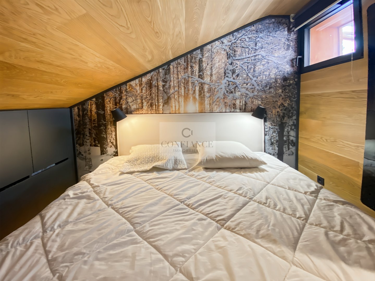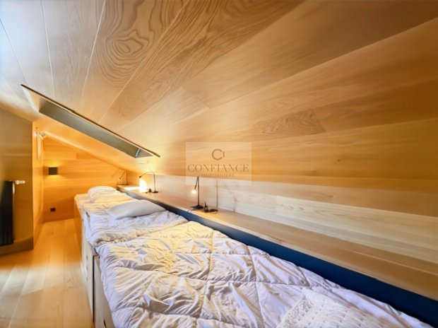 En annexes : cinq casiers à skis, garage fermé et parking extérieur privatif.