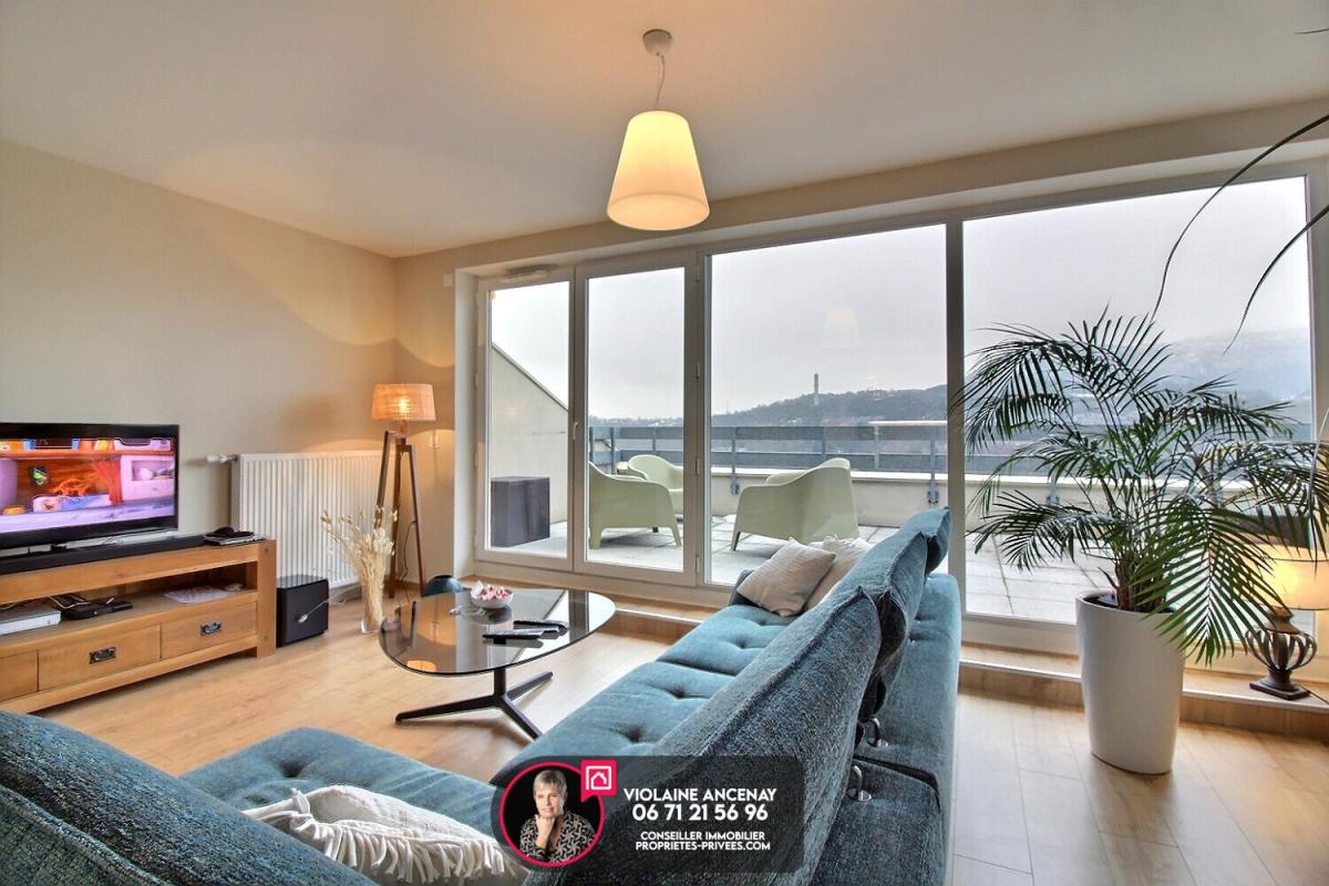 Son véritable atout : une très grande terrasse de 36 m² exposée sud-est, offrant une vue dégagée et panoramique sur les massifs de la Chartreuse et des Bauges, idéale pour les repas en famille ou les moments de détente.