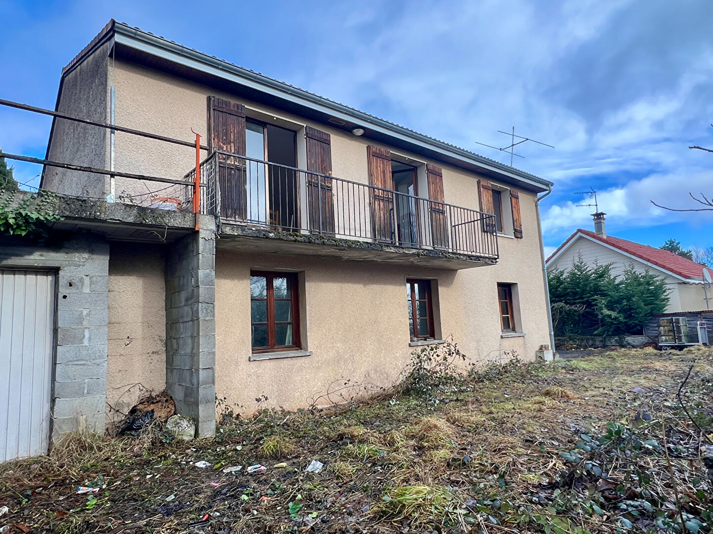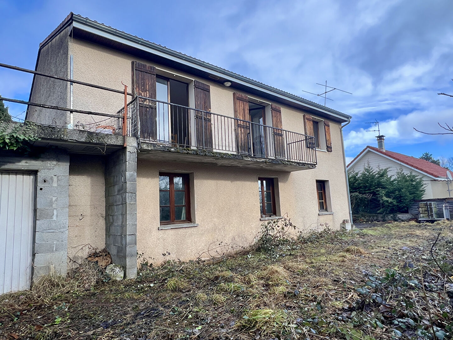 - Travaux à prévoir : menuiseries, rénovation intérieure, finitions extérieures (terrasses, garde-corps, portail) et assainissement individuel