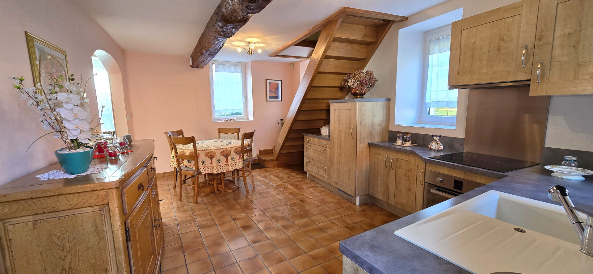 Une maison pleine de charme, où la pierre et les volumes authentiques se mêlent harmonieusement aux aménagements actuels.