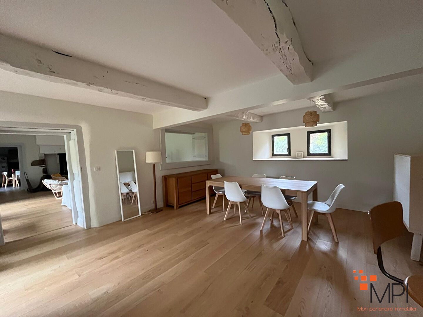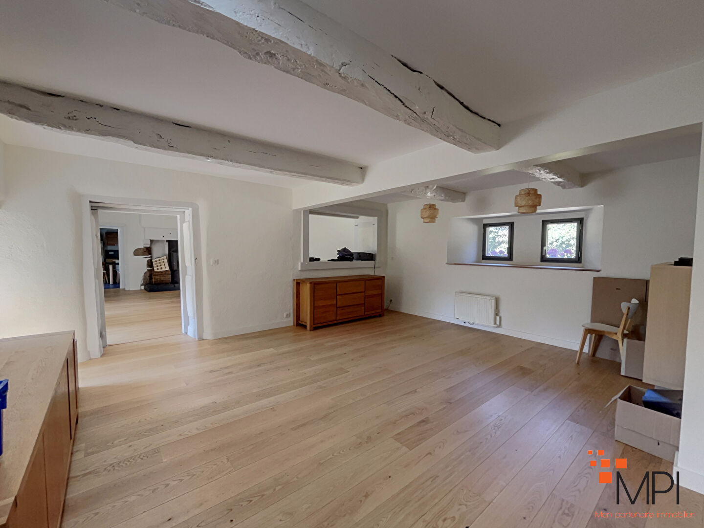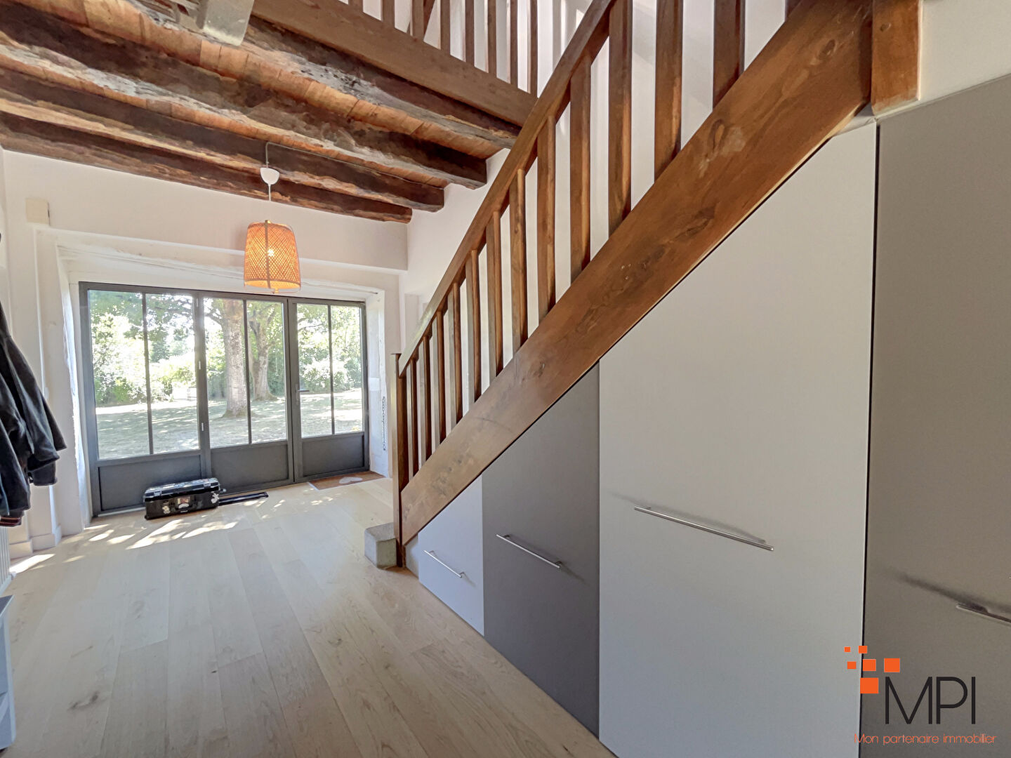 Elle se compose au rez-de-chaussée d'une belle entrée avec placards, d'un salon de 28 m², un séjour de 35 m² exposé sud et nord avec poêle à bois, une grande cuisine aménagée et équipée, une buanderie, une belle chambre, une salle d'eau et un WC séparé.