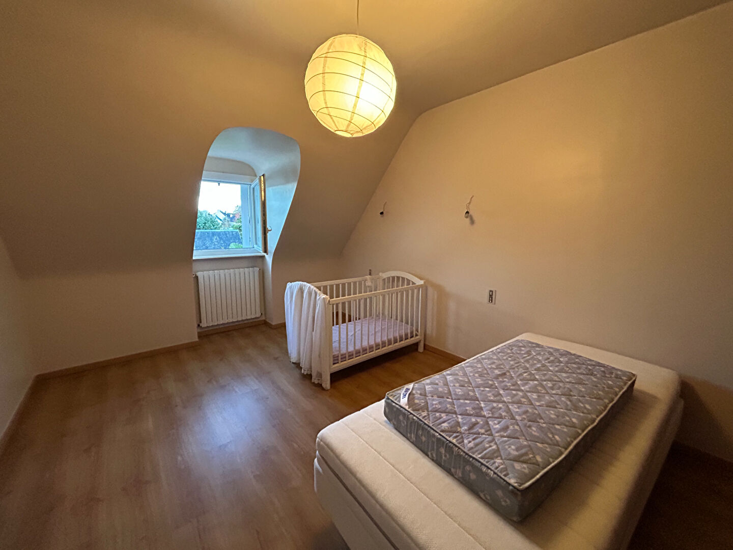 A l'étage, un palier mezzanine dessert trois chambres, une salle de bains, un dressing et un WC indépendant, offrant un espace de nuit confortable pour toute la famille.