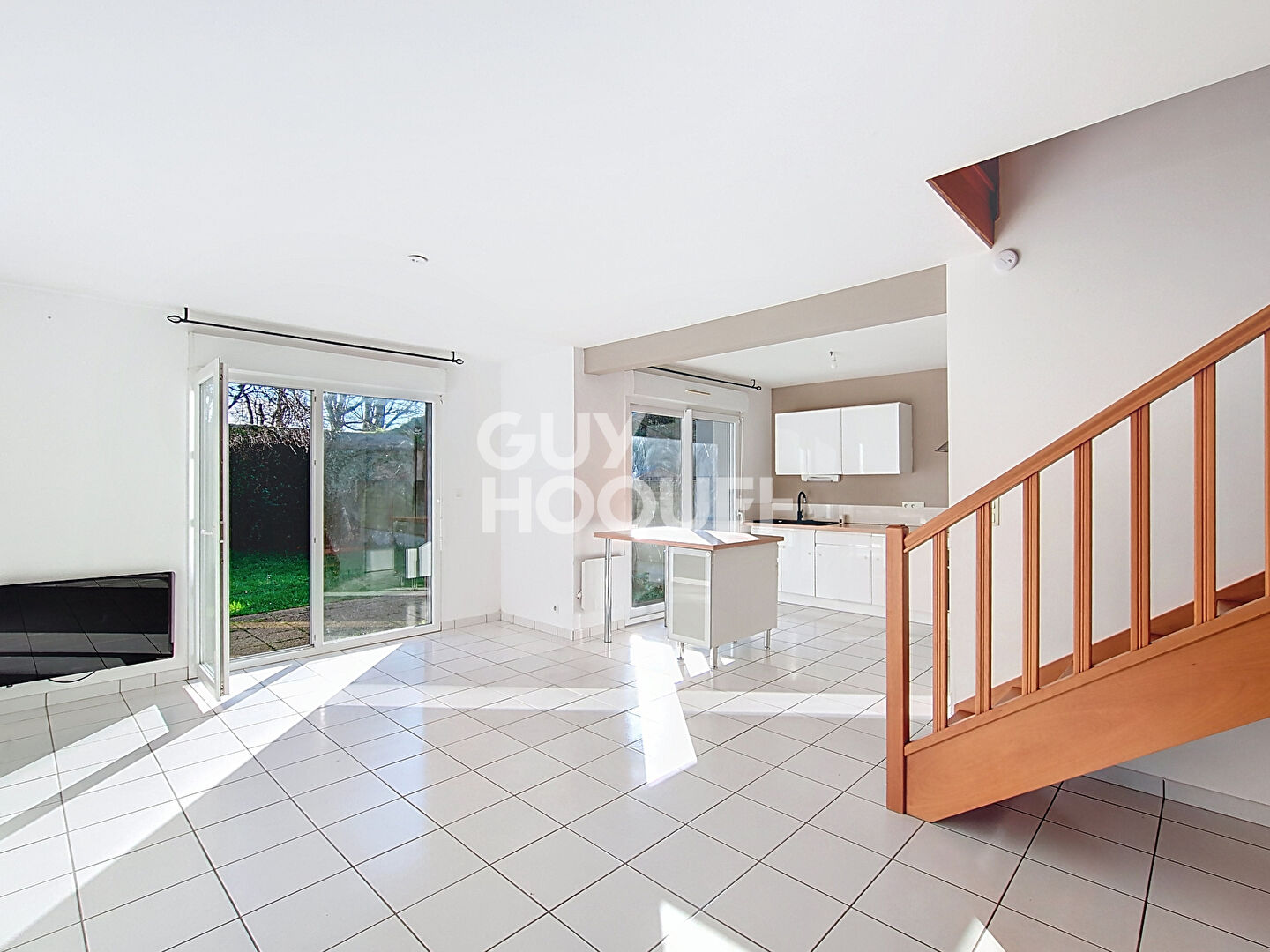 Elle se compose d'une entrée, d'un bel espace de vie donnant sur le jardin/terrasse, d'une cuisine ouverte aménagée, d'un cellier et garage. À l'étage, une mezzanine, trois chambres, dont une avec salle d'eau privative et salle de bain.