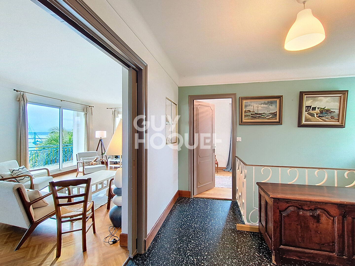 Développant 171 m², elle comprend un vaste séjour lumineux avec vue mer, une cuisine indépendante, 7 chambres, deux salles d'eau/bains et de belles terrasses.