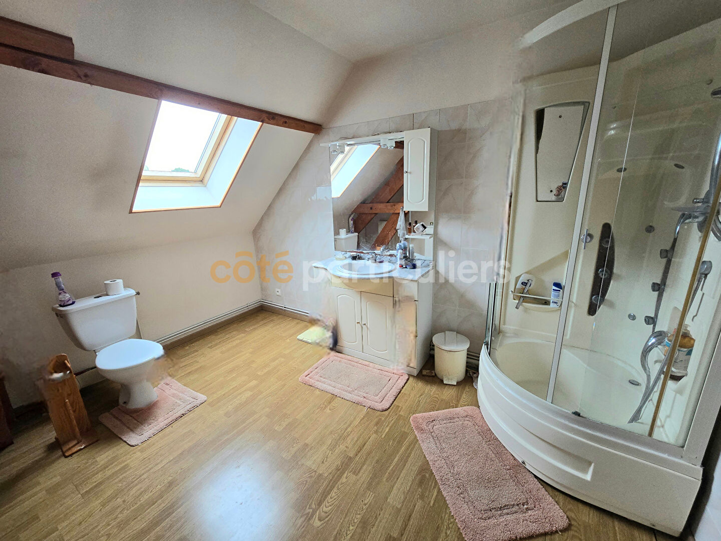 À l'étage, le coin nuit comprend trois chambres ainsi qu'une salle de bain avec WC.
