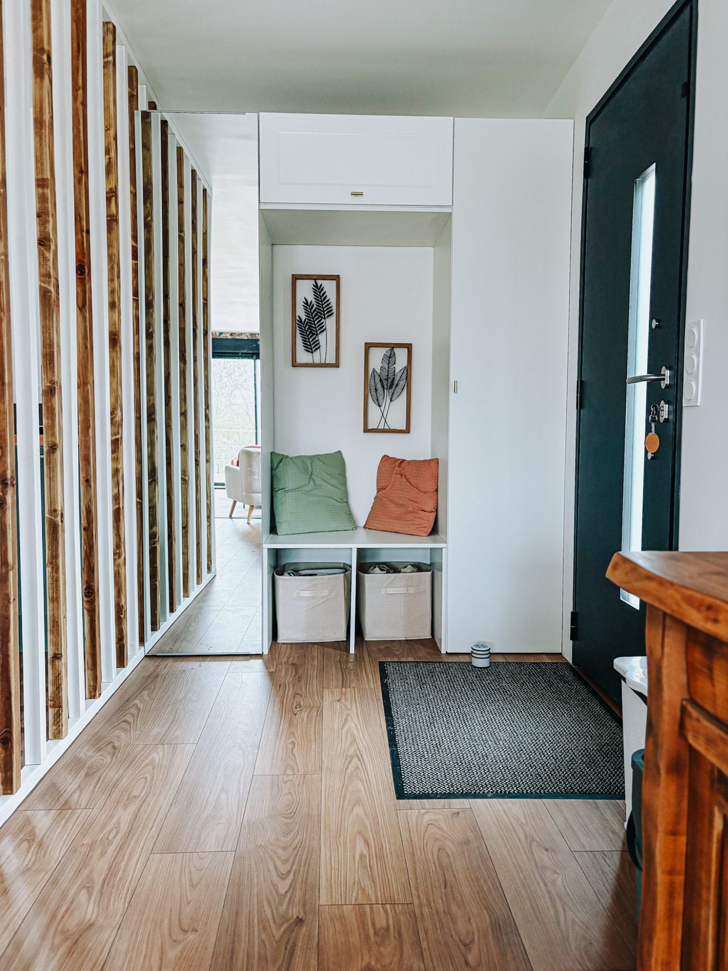Dès l'entrée, l'atmosphère se dévoile : lignes épurées, matériaux naturels, circulation fluide. Le regard est immédiatement attiré par les larges baies vitrées du séjour, véritables cadres ouverts sur le paysage, offrant chaque soir un spectacle de couchers de soleil aux teintes apaisantes.