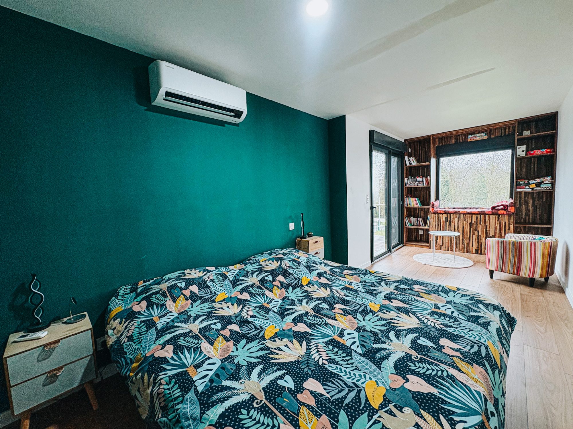 La partie nuit accueille trois chambres, dont une suite parentale conçue comme un cocon : dressing, salle d'eau privative et un espace lecture intime, propice au calme et à la déconnexion. Une salle de bain indépendante ainsi qu'un WC séparé complètent l'ensemble avec cohérence et confort.