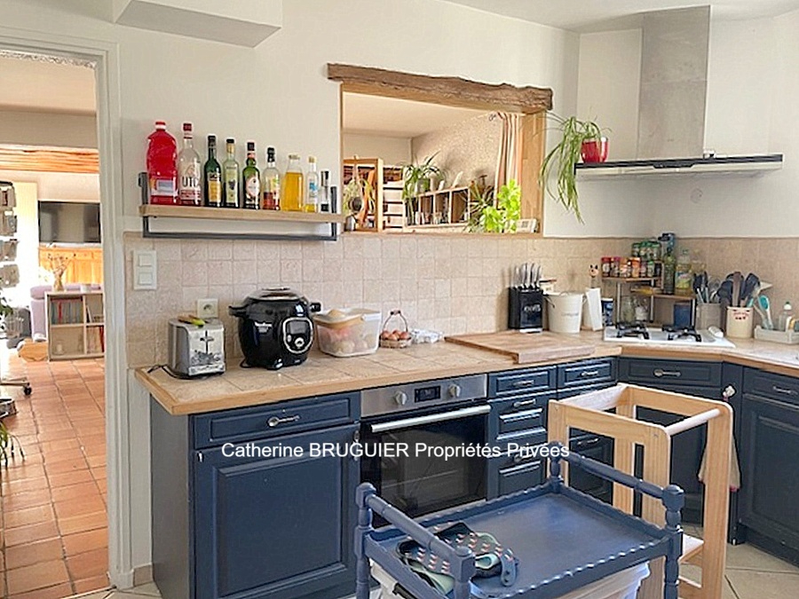 DESCRIPTIF: Cachée derrière de hauts murs en pierres et un grand portail : un véritable havre de paix vous attend. Cette maison est un subtil mélange de la pierre, du bois, des tomettes, une maison de village pleine de charme composée dans une aile d'une spacieuse pièce de vie, environ 70 m2, avec cheminée, ouverte sur le jardin par une grande baie, d'une cuisine aménagée et équipée, de 2 chambres en RDC, une salle d'eau, d'une buanderie, d'espaces de rangement et de détente. Dans l'autre aile avec accès indépendant, une autre cuisine, un salon pouvant faire office de chambre avec salle d'eau privative, une salle de bain et à l'étage 2 chambres.