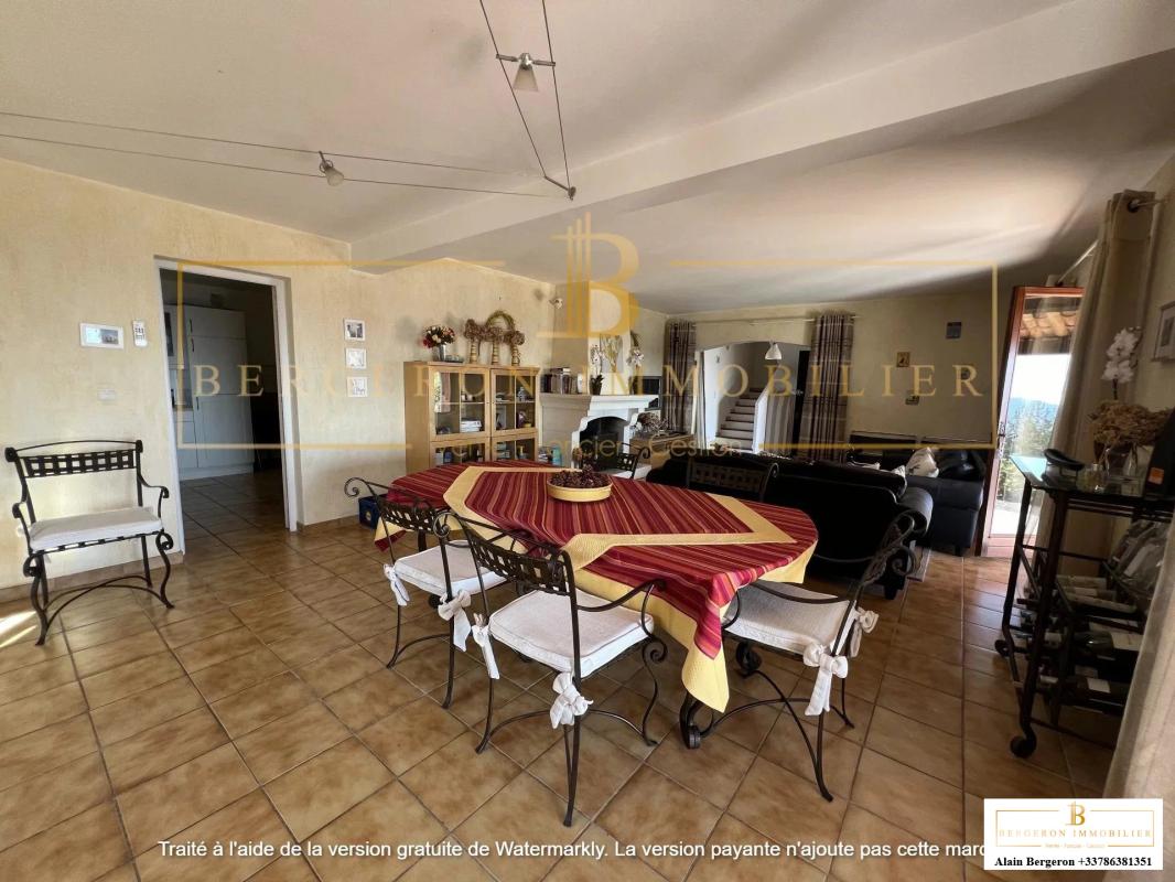 A VENDRE EXCLUSIVITE à Spéracedès maison 5 pièces 194m² bénéficiant d'une superbe situation résientielle au calme, avec vue mer panoramique. Jardin Mediterranéen 1800m² clos et facile d'entretien. Au rez-de-jardin: grand séjour cheminée avec vue et terrasse couverte, cuisine fermée équipée et aménagée, cellier, buanderie, 1 chambre ouvrant côté piscine sur une terrasse couverte, salle d'eau avec WC et 1 autre WC indépendant. A l'étage: 1 salle de bain, 3 chambres dont 1 chambre master avec sa salle de bain et WC, debarras, terrasse avec vue mer profitant aux 2 chambres à l'ouest. Piscine chauffée 11x5 Garage Climatisation. Réf 2360