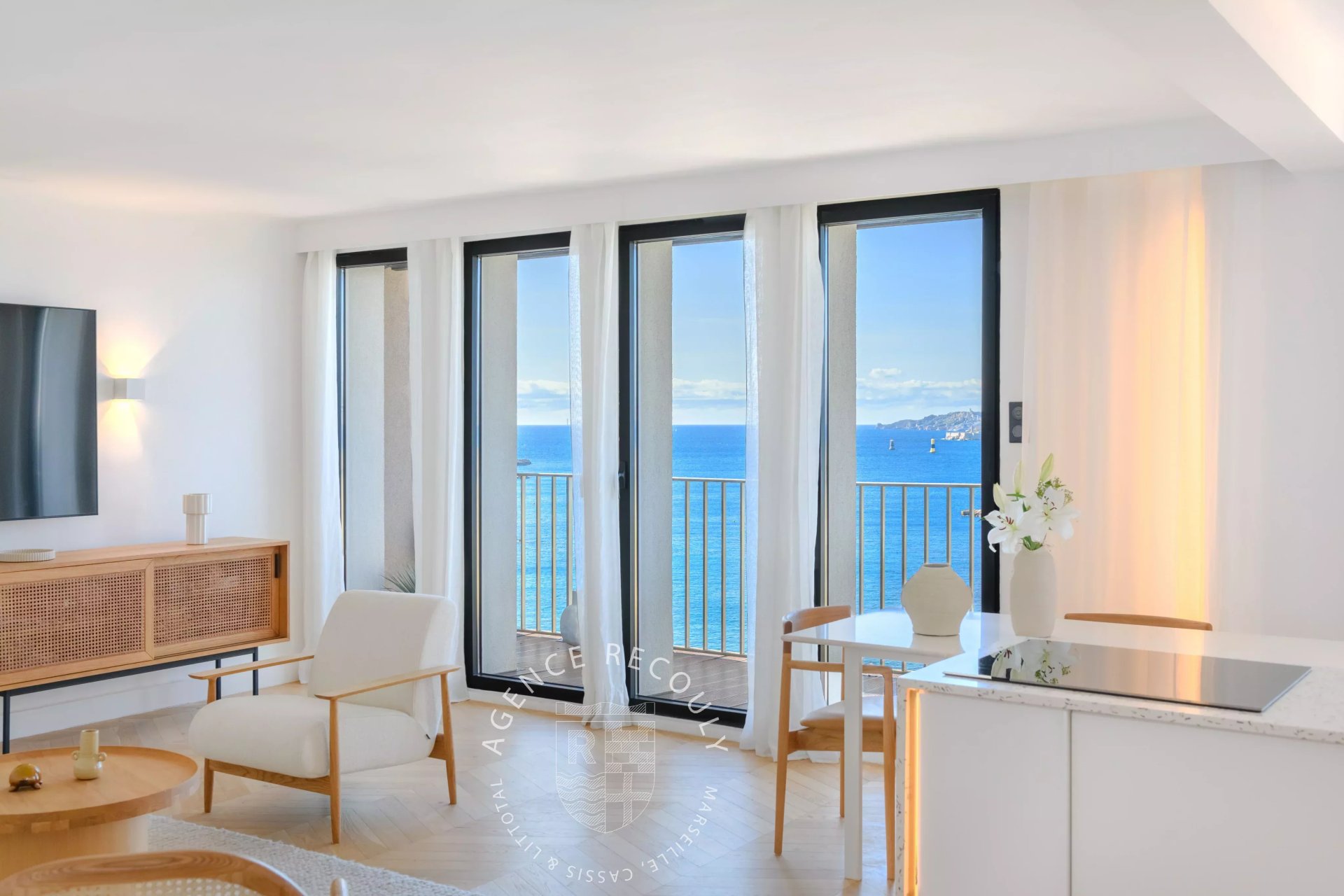 Idéalement situé, dans le quartier prisé des Catalans, en étage élevé, face à la mer, cet élégant appartement d'une surface de 80 m2 carrez entièrement rénové en 2025, offre une vue panoramique sur la mer, les îles du Frioul et la ville depuis chacune de ses pièces.