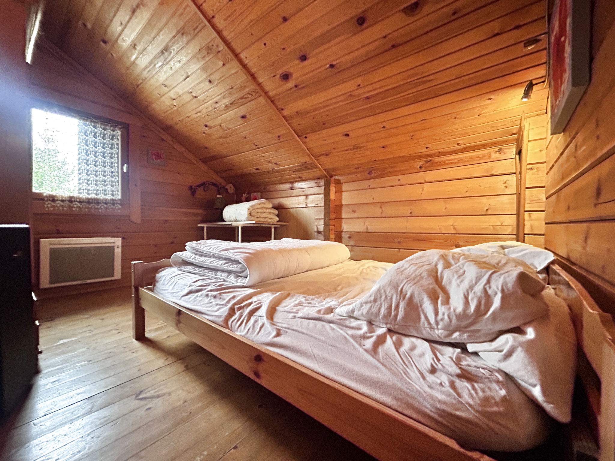Chalet en bon état général, construction bois saine et chaleureuse.Quelques rafraîchissements à prévoir, laissant libre cours à vos envies de personnalisation.