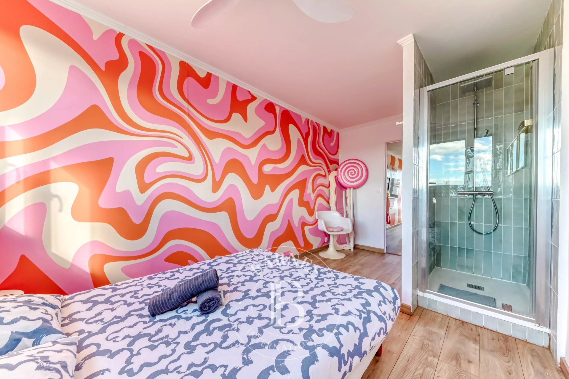 L’ensemble se distingue par une décoration aux tonalités pop et colorées, apportant une atmosphère dynamique et joyeuse, unique.