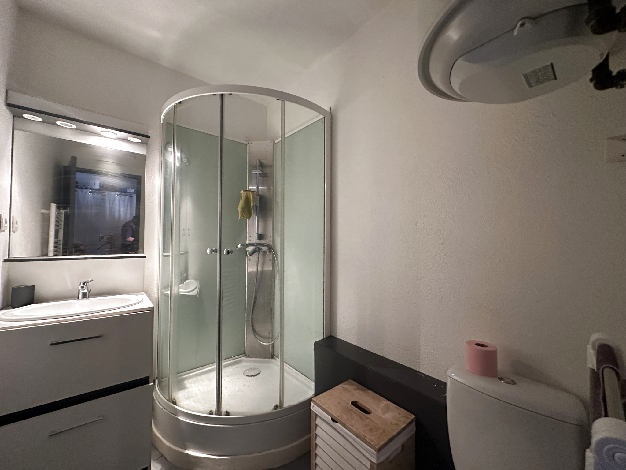 L'espace de vie s'ouvre sur une terrasse exposée plein sud, avec un kitchenette de placards aménagés et d'une salle d'eau avec w.c.,